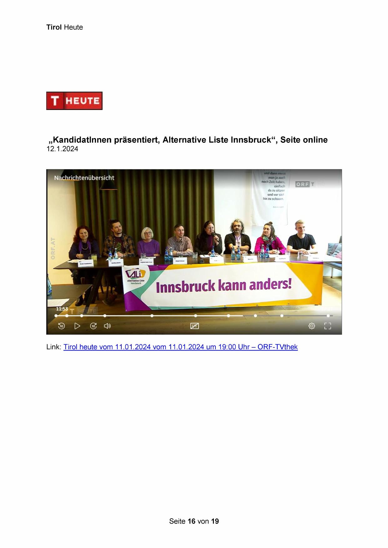 „Kandidatinnen präsentiert, Alternative Liste Innsbruck“, Seite online