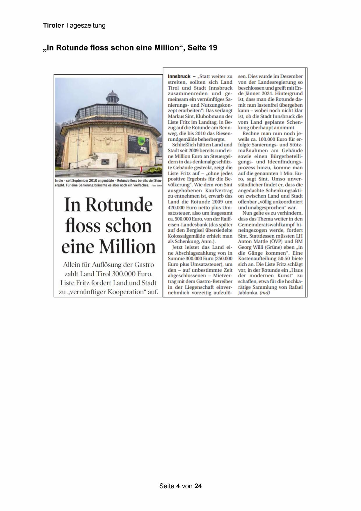Liste Fritz im Landtag, in Bezug auf die Rotunde am Rennweg, die bis 2010 das Riesenrundgemälde beherbergte.