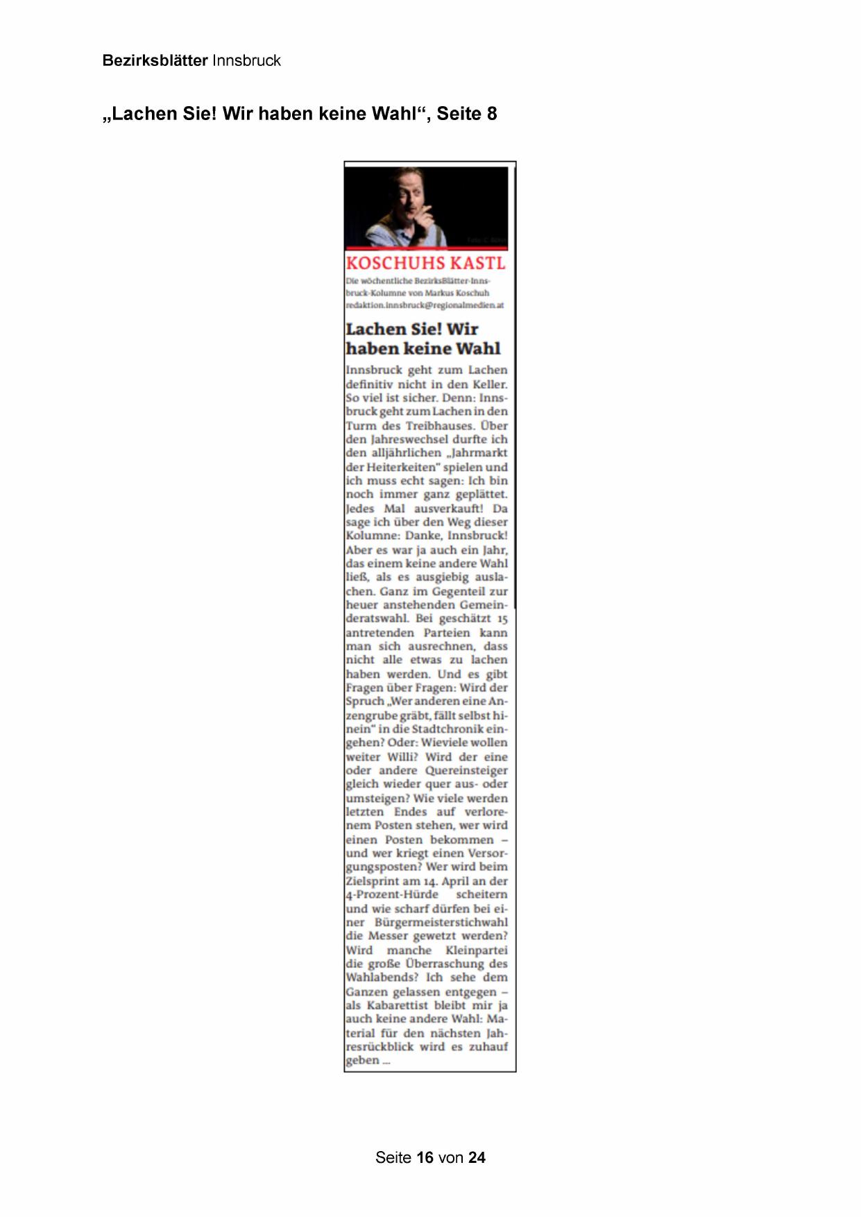 So viel ist sicher. Denn: Innsbruck geht zum Lachen in den