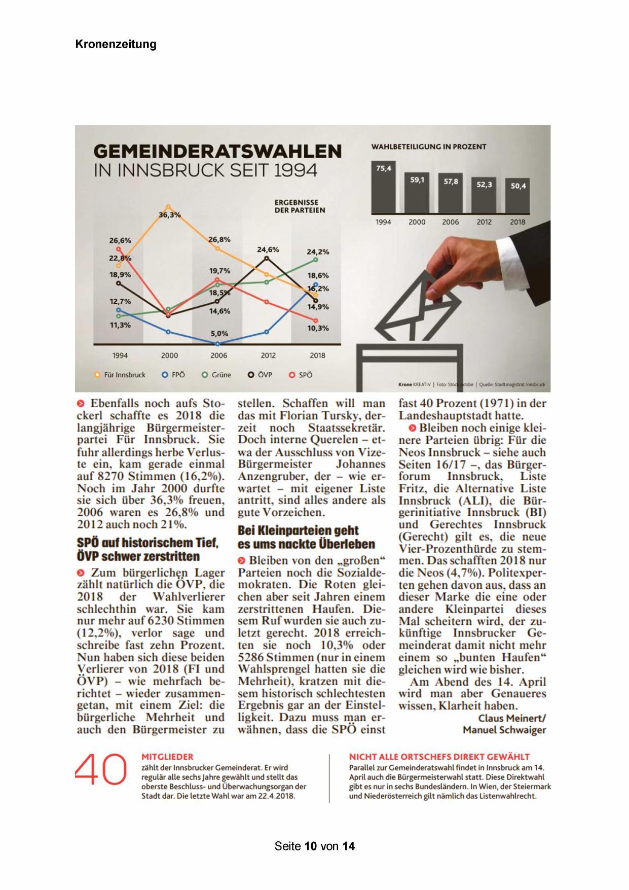 langjährige Bürgermeisterpartei Für Innsbruck. Sie