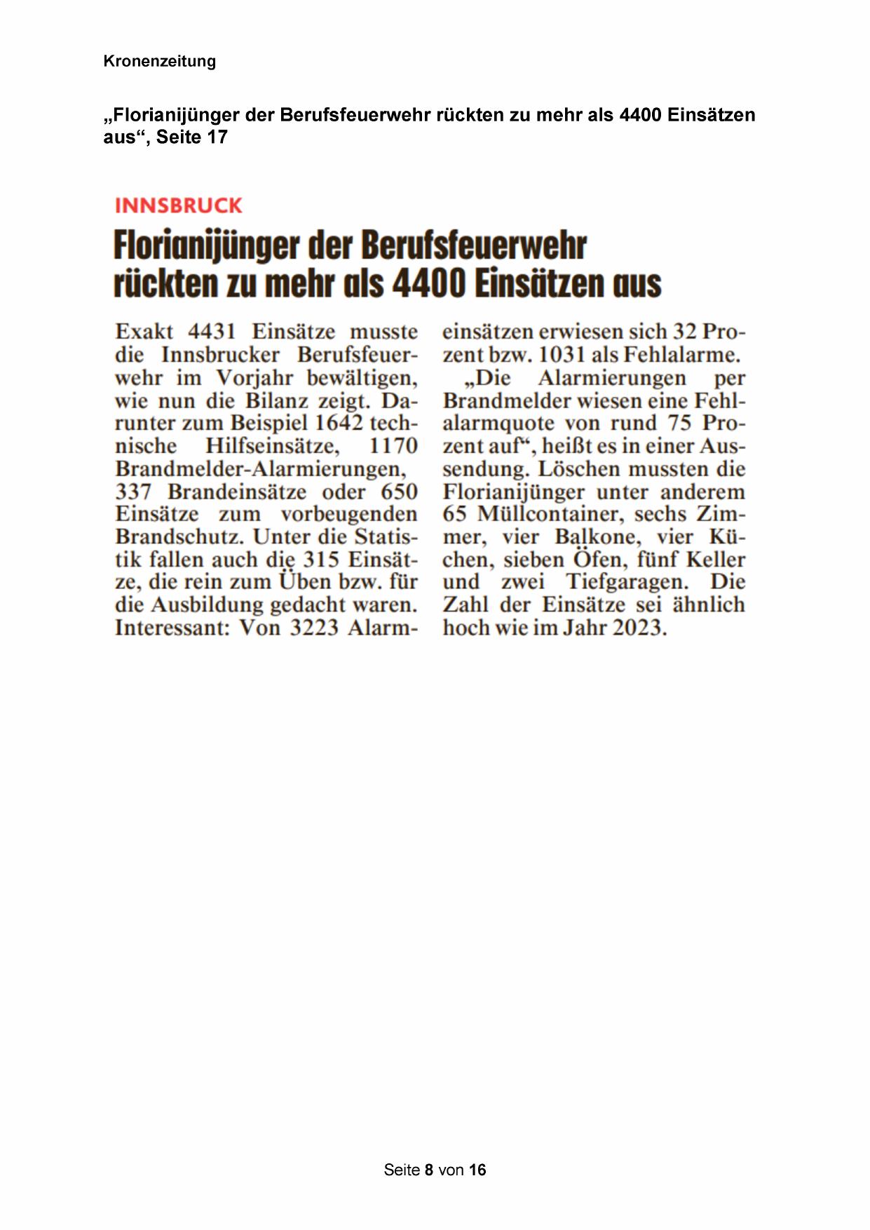 die Innsbrucker Berufsfeuerwehr im Vorjahr bewältigen,