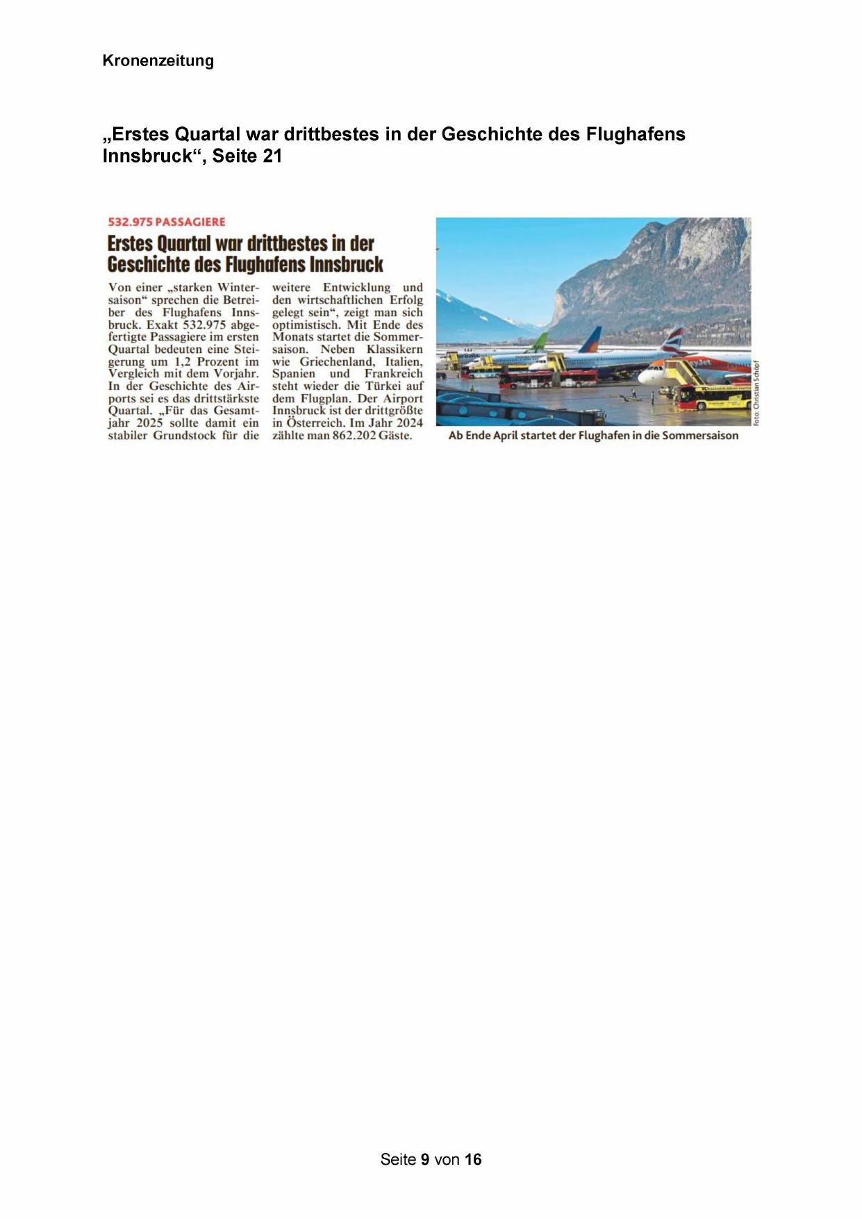 Von einer „starken Wintersaison“ sprechen die Betreiber des Flughafens Innsbruck. Exakt 532.975 abgefertigte Passagiere im ersten