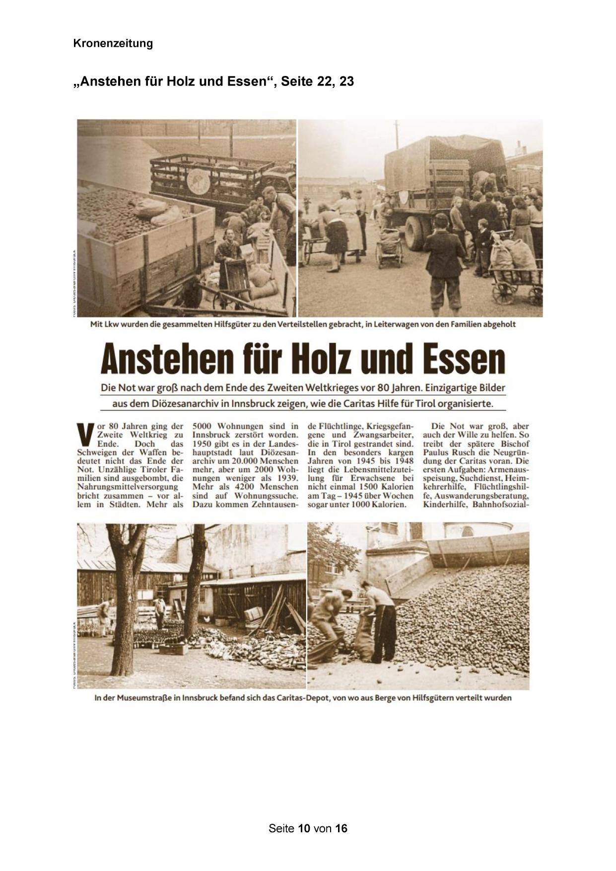 aus dem Diözesanarchiv in Innsbruck zeigen, wie die Caritas Hilfe für Tirol organisierte.