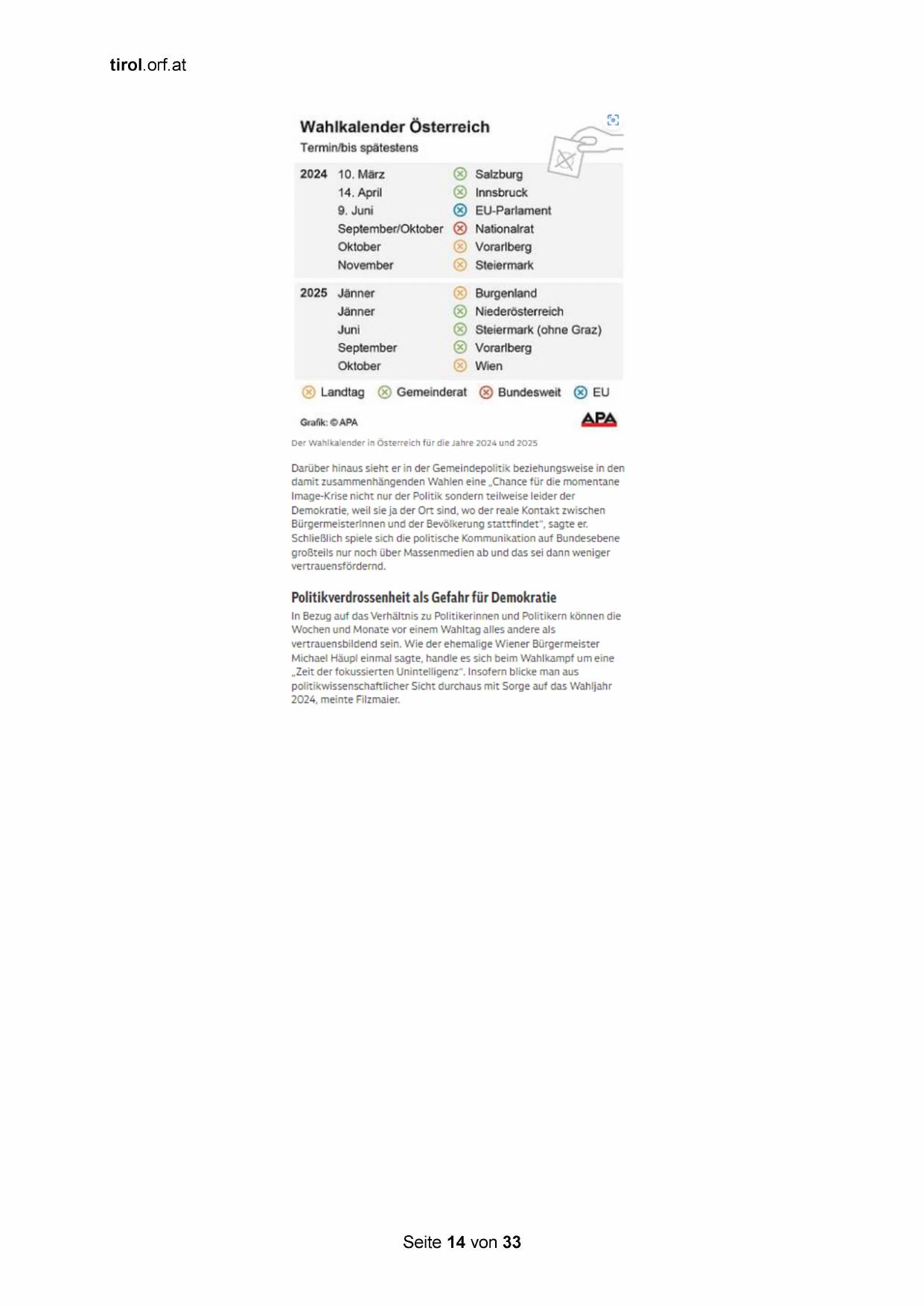 Der Wahlkalender in Österreich für die Jahre 2024 und 2025