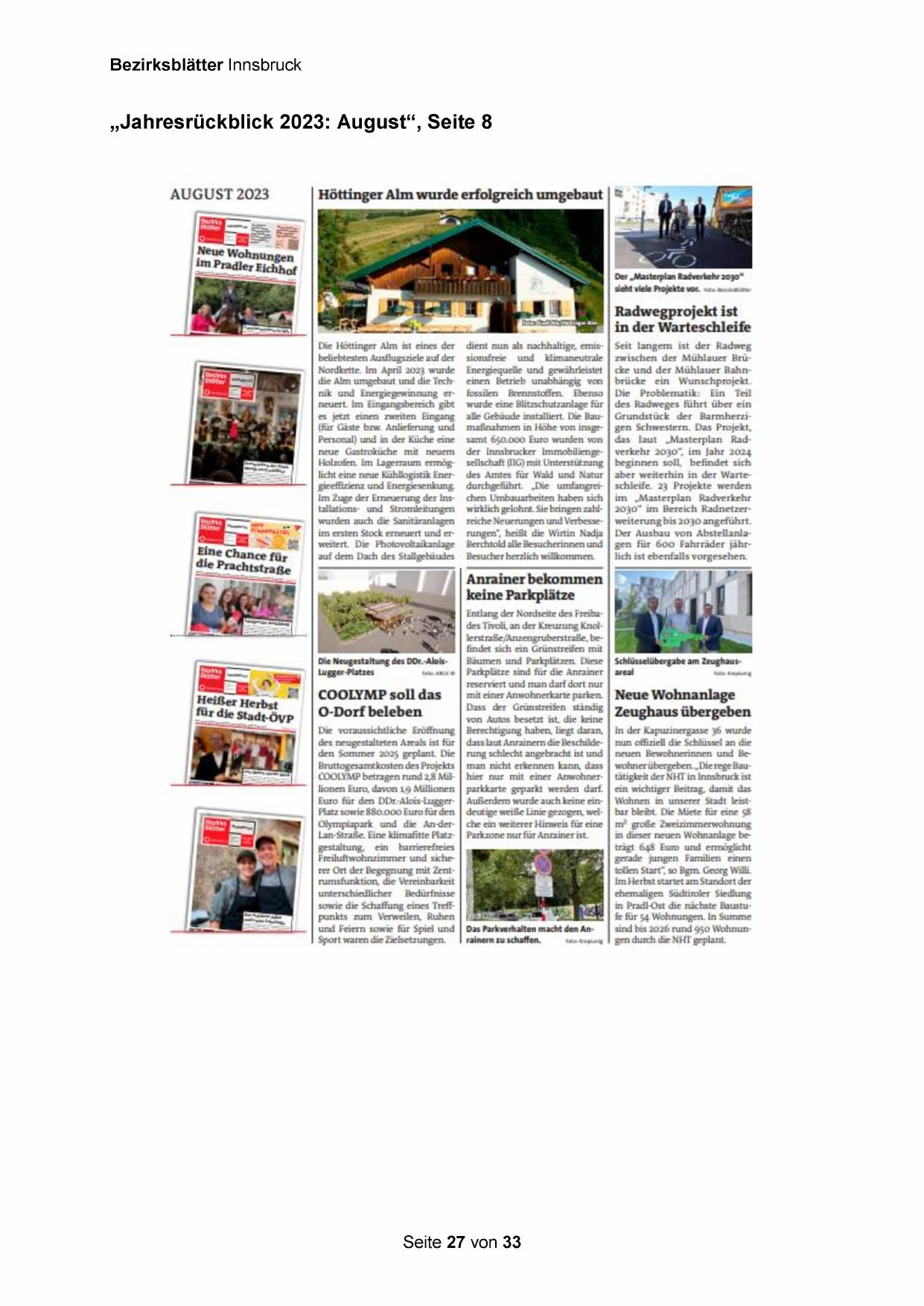 neuen Bewohnerinnen und Bewohnerübergeben..Die rege Bautätigkeit der NHT in Innsbruck ist