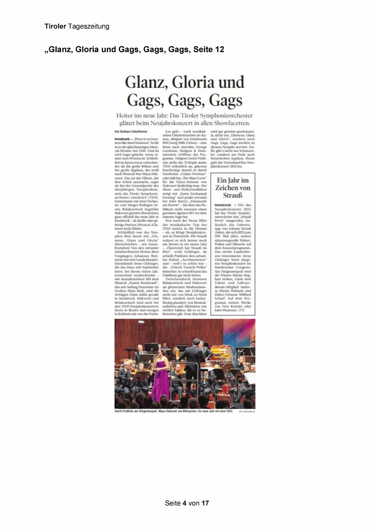diesjährigen Newujahrskonzerts des Tiroker Symphonle