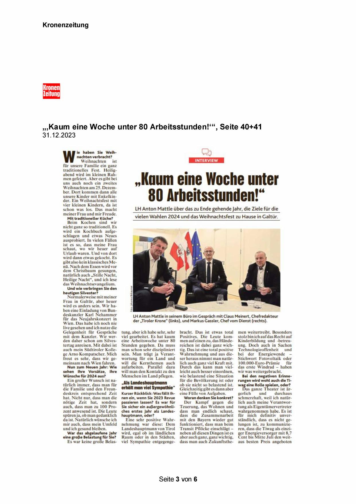LH Anton Mattle über das zu Ende gehende Jahr, die Ziele für die