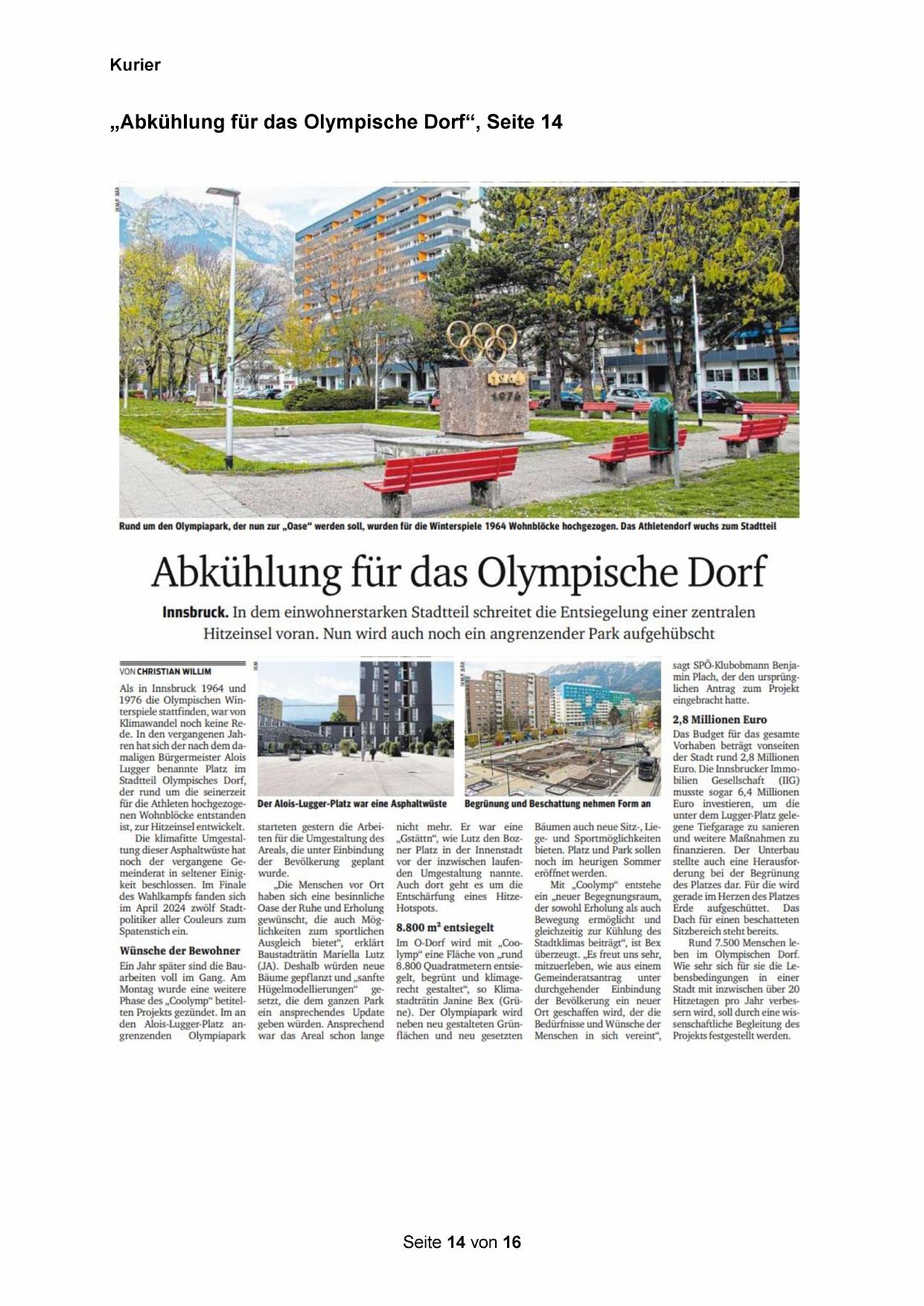 „Abkühlung für das Olympische Dorf“, Seite 14