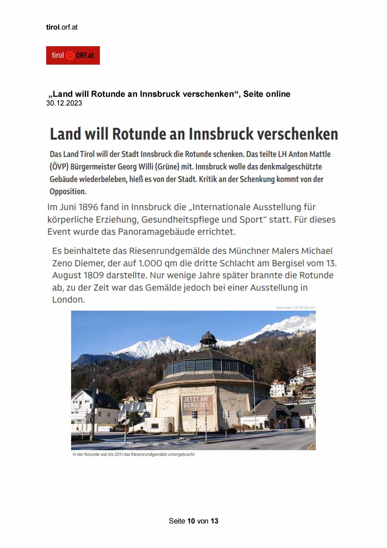 „Land will Rotunde an Innsbruck verschenken“, Seite online