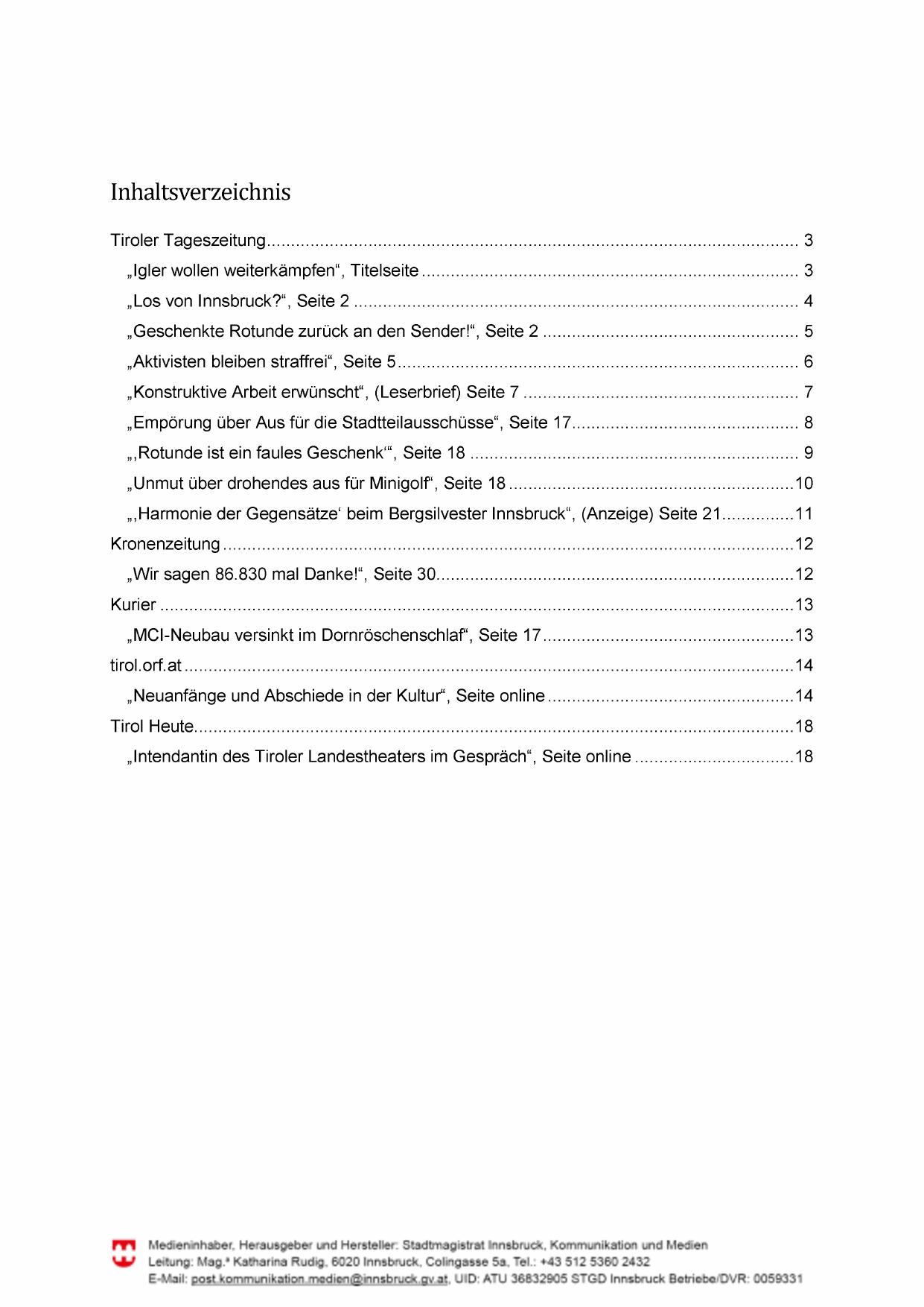 „‚Harmonie der Gegensätze‘ beim Bergsilvester Innsbruck“, (Anzeige) Seite 21............... 11