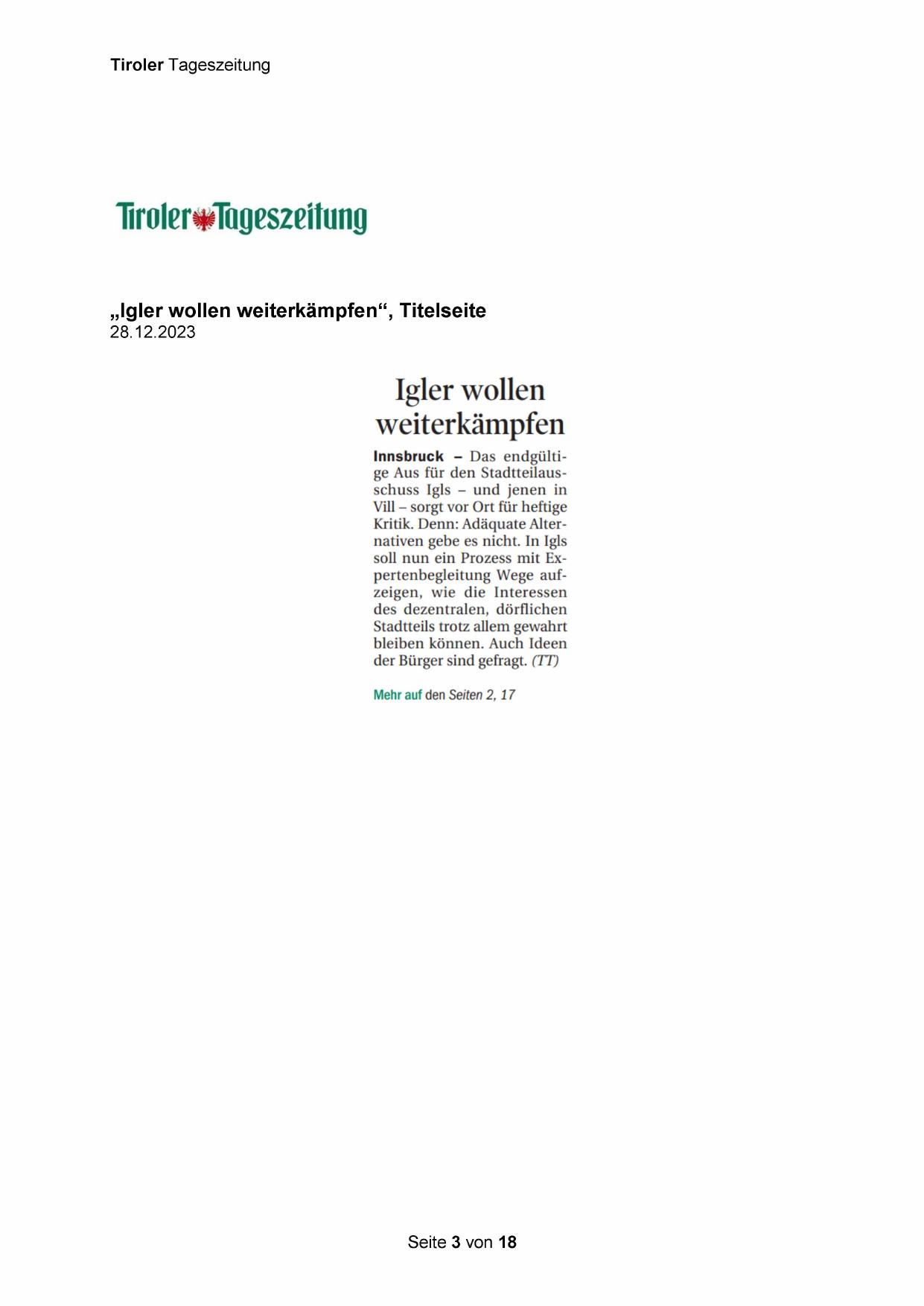 Innsbruck - Das endgültige Aus für den Stadtteilausschuss Igls - und jenen in