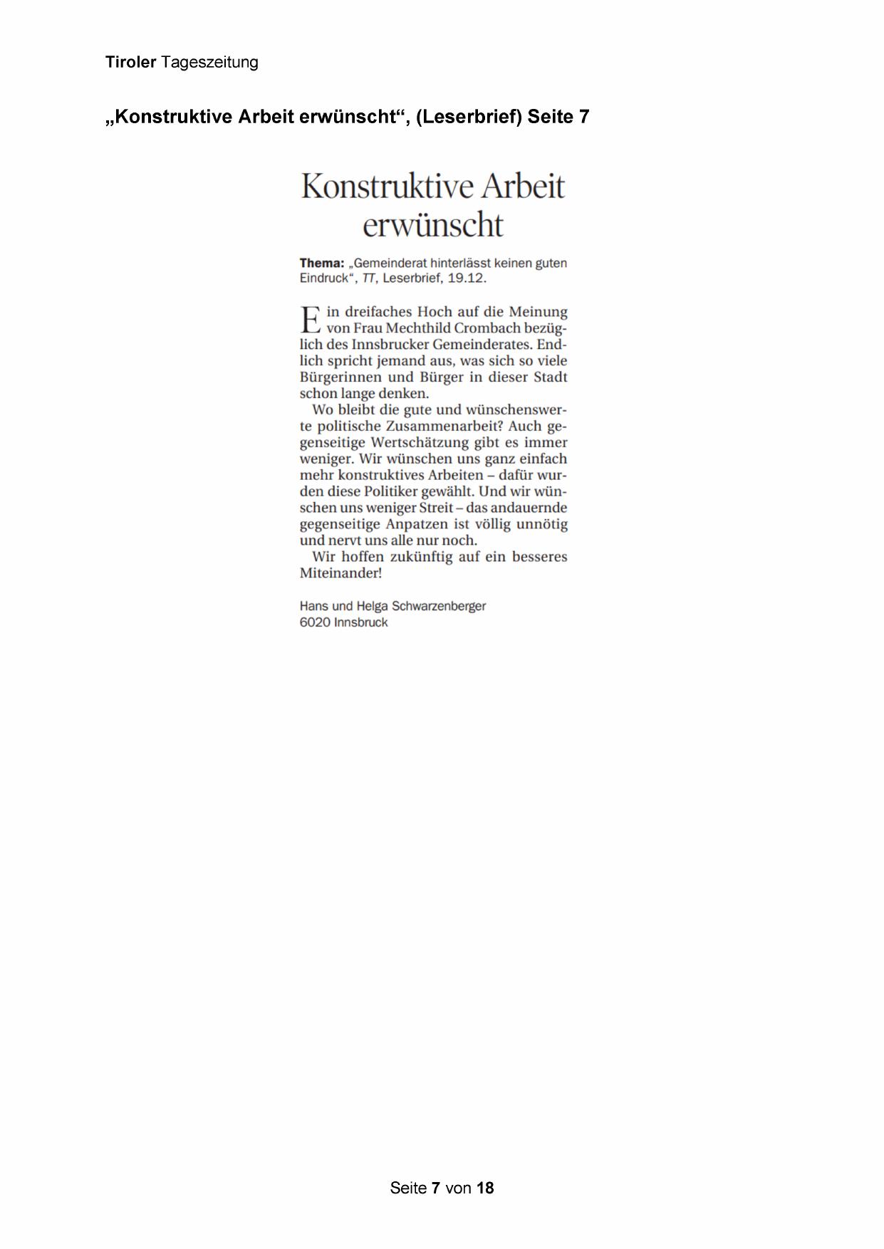 „Konstruktive Arbeit erwünscht“, (Leserbrief) Seite 7