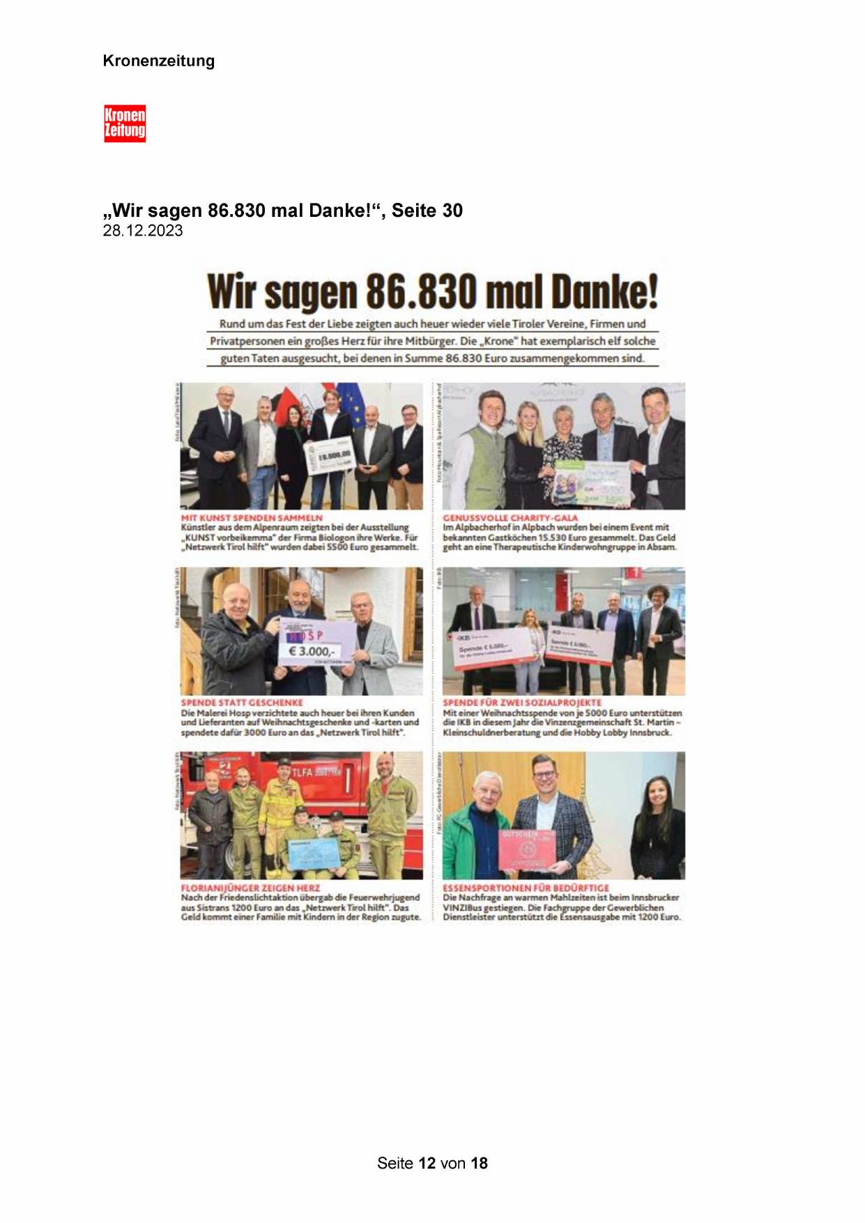 aus Sistrans 1200 Euro an das „Netzwerk Tirol hilft”. Das VINZIBus gestiegen. Die Foch der Gewerblichen