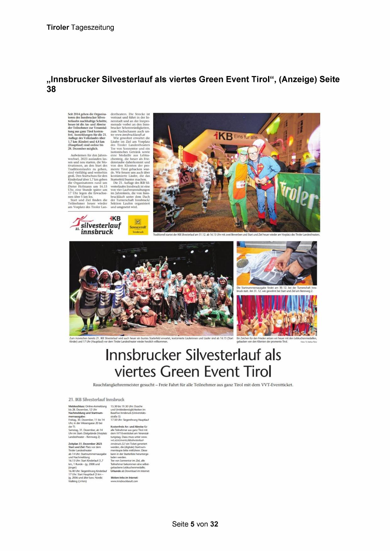 „Innsbrucker Silvesterlauf als viertes Green Event Tirol‘“, (Anzeige) Seite