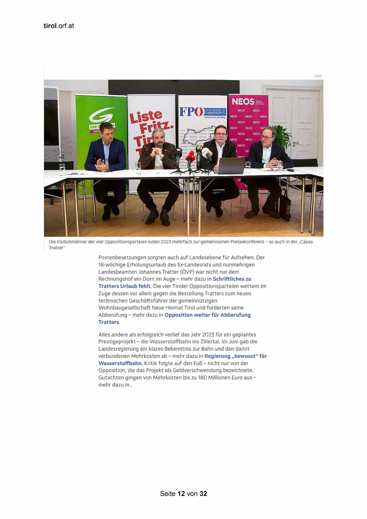 Tratters Urlaub fehlt. Die vier Tiroler Oppositionsparteien wettern im