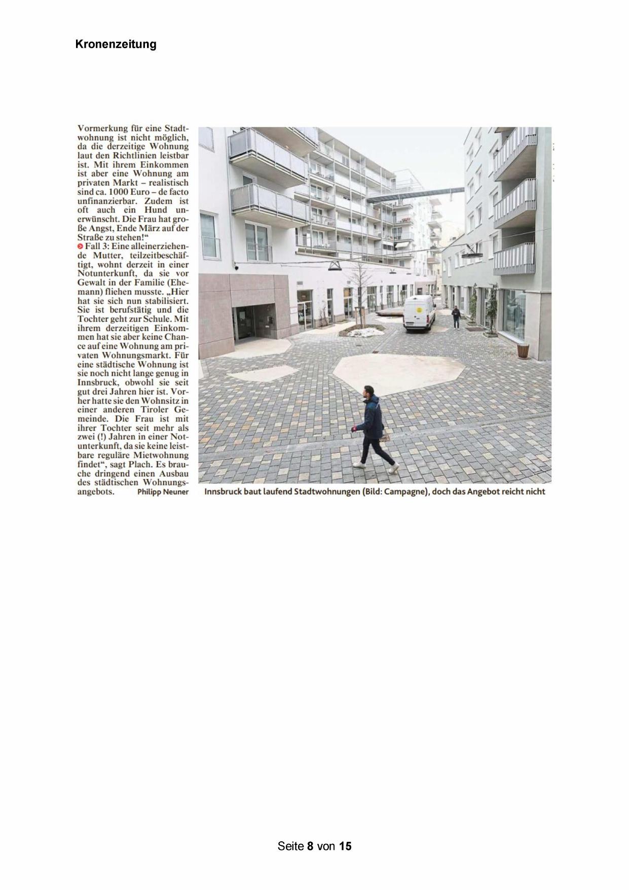 ihrem derzeitigen Einkommen hat sie aber keine Chance auf eine Wohnung am privaten Wohnungsmarkt. Für