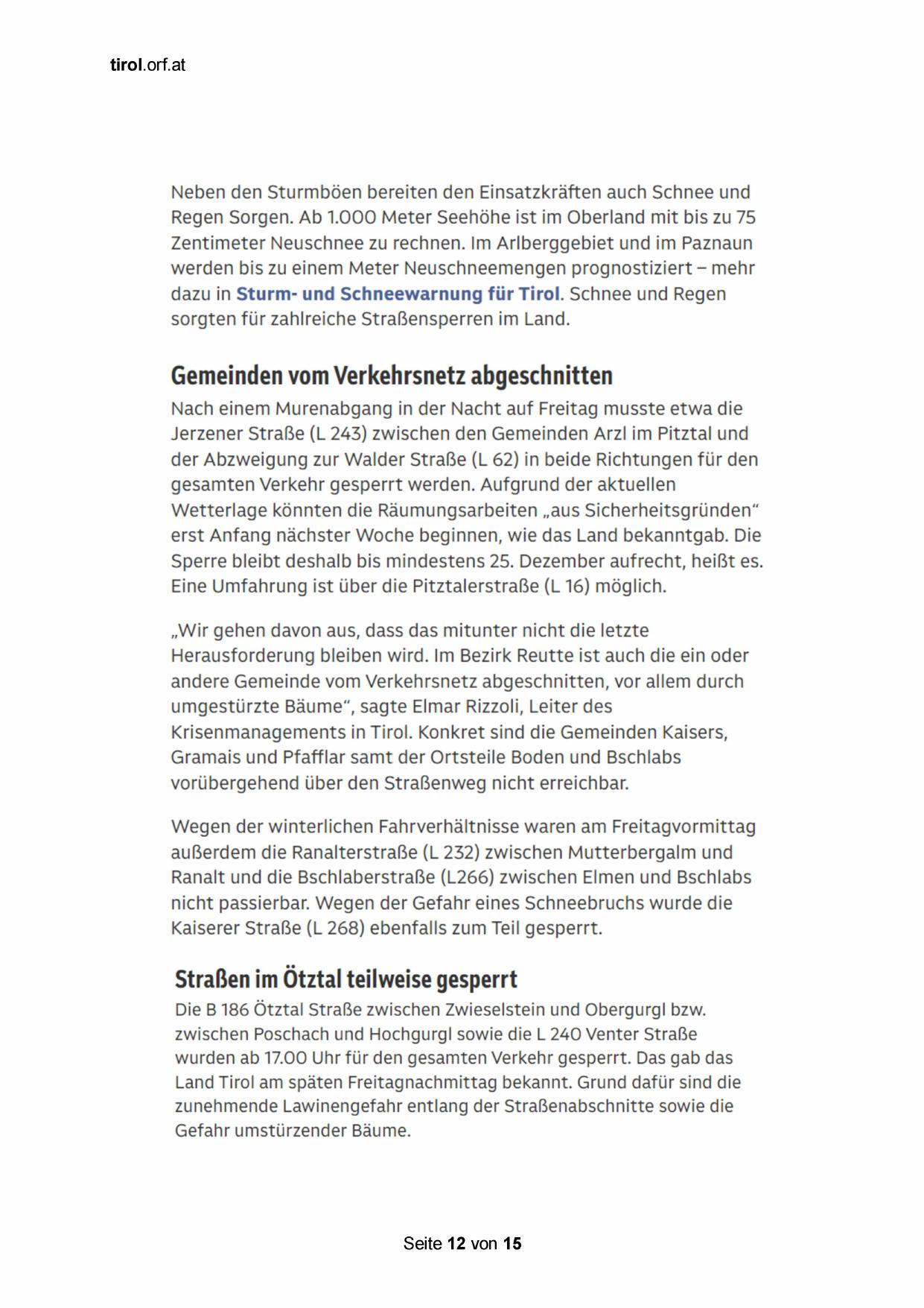 Krisenmanagements in Tirol. Konkret sind die Gemeinden Kaisers,