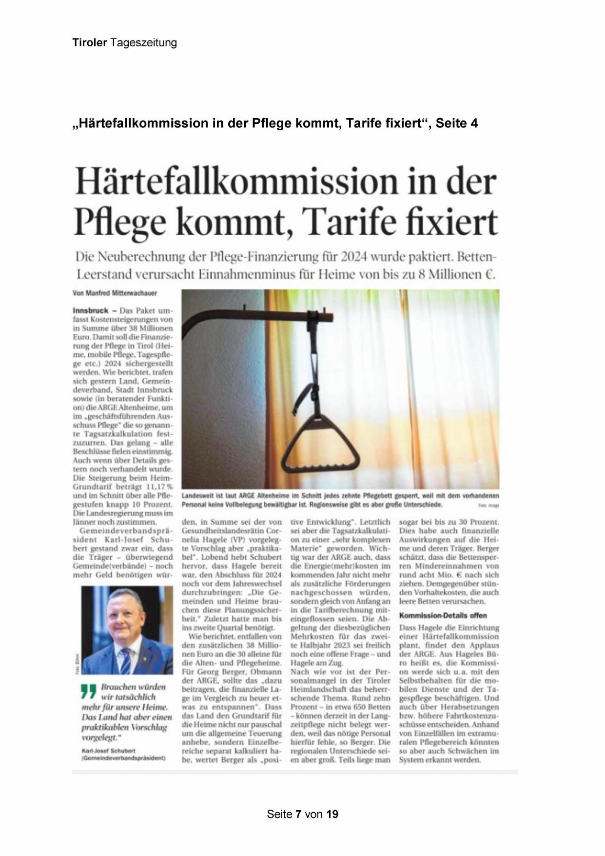 „Härtefallkommission in der Pflege kommt, Tarife fixiert“, Seite 4