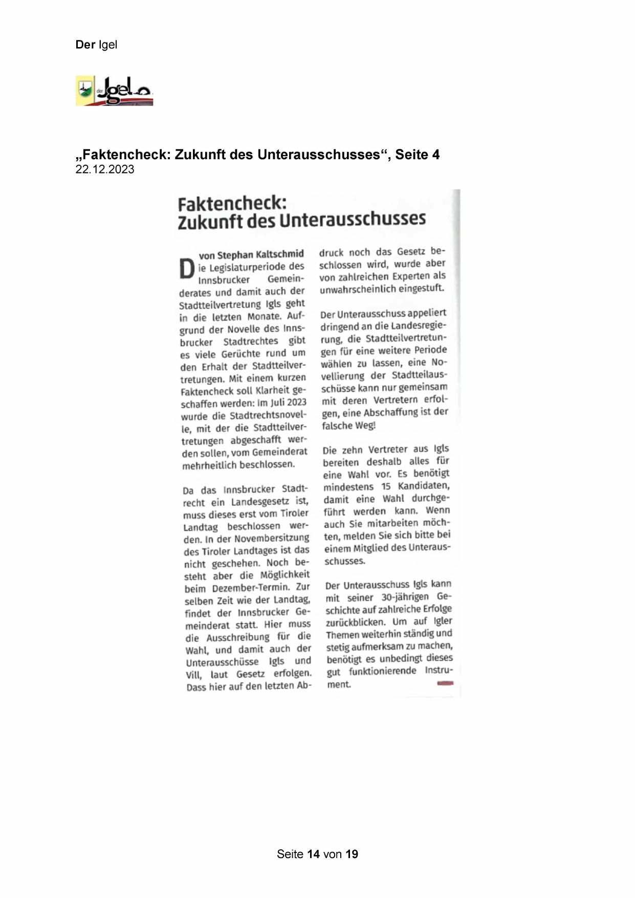 in die letzten Monate. Aufgrund der Novelle des Innsbrucker Stadtrechtes gibt