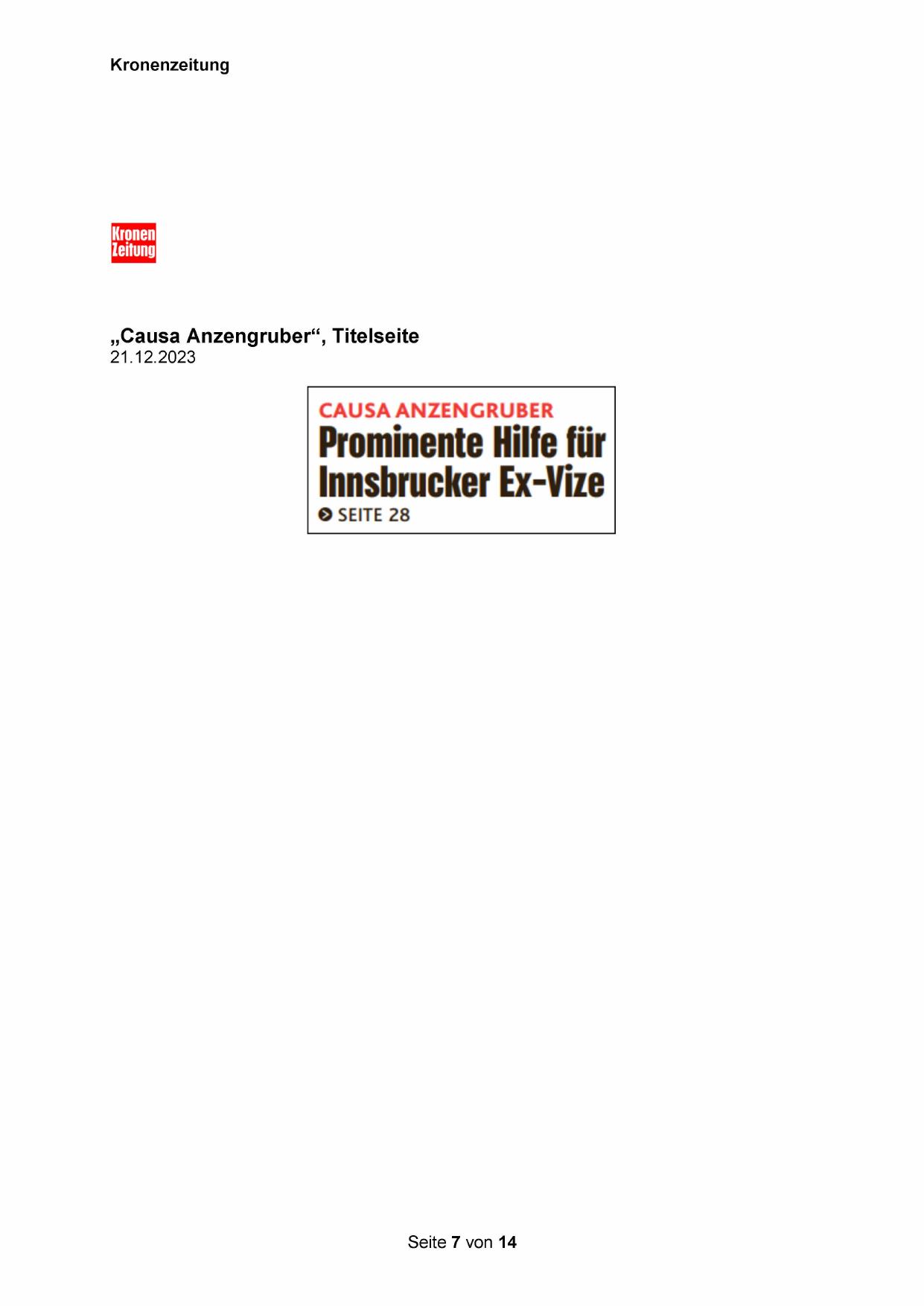 „Causa Anzengruber“, Titelseite