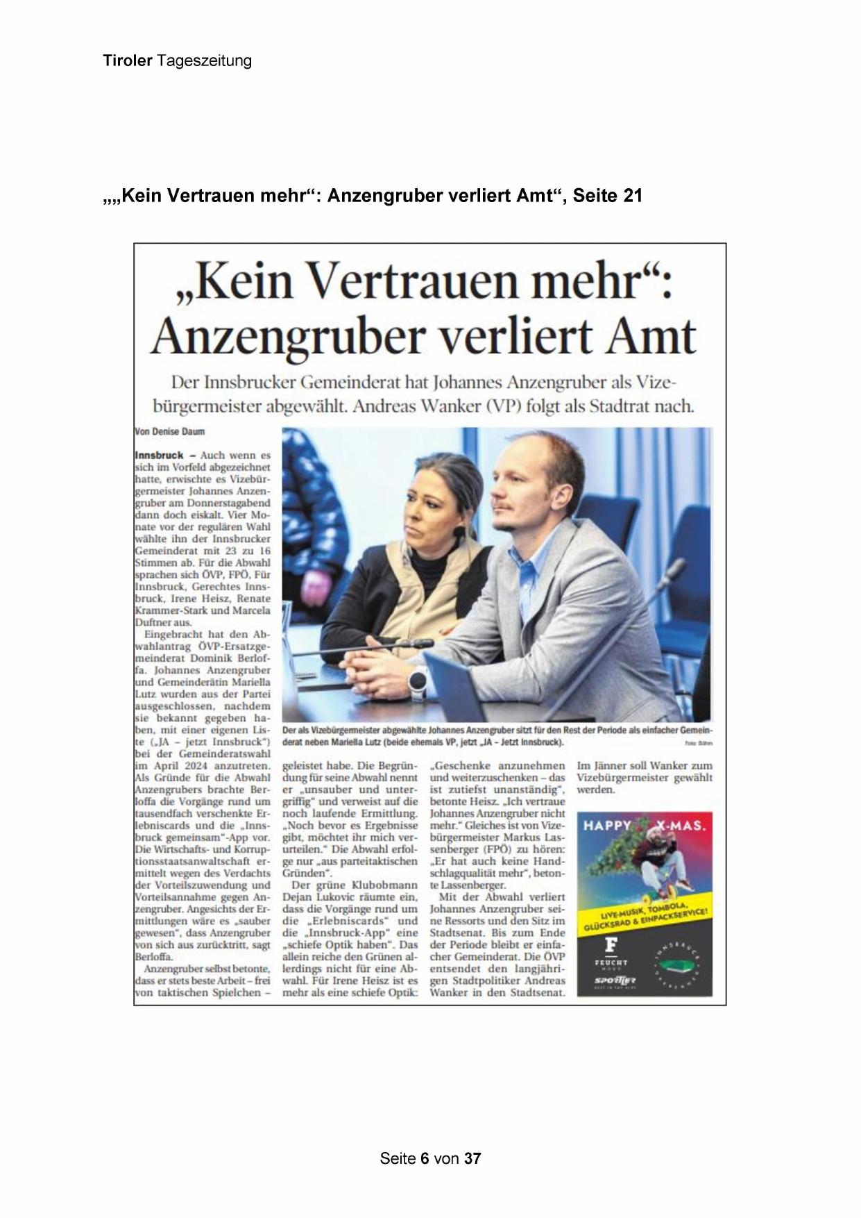 „„Kein Vertrauen mehr“: Anzengruber verliert Amt“, Seite 21
