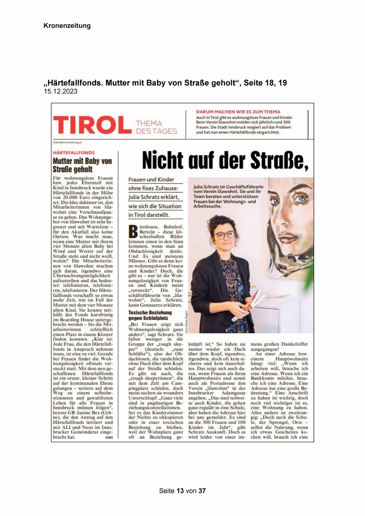 „Härtefallfonds. Mutter mit Baby von Straße geholt‘“, Seite 18, 19