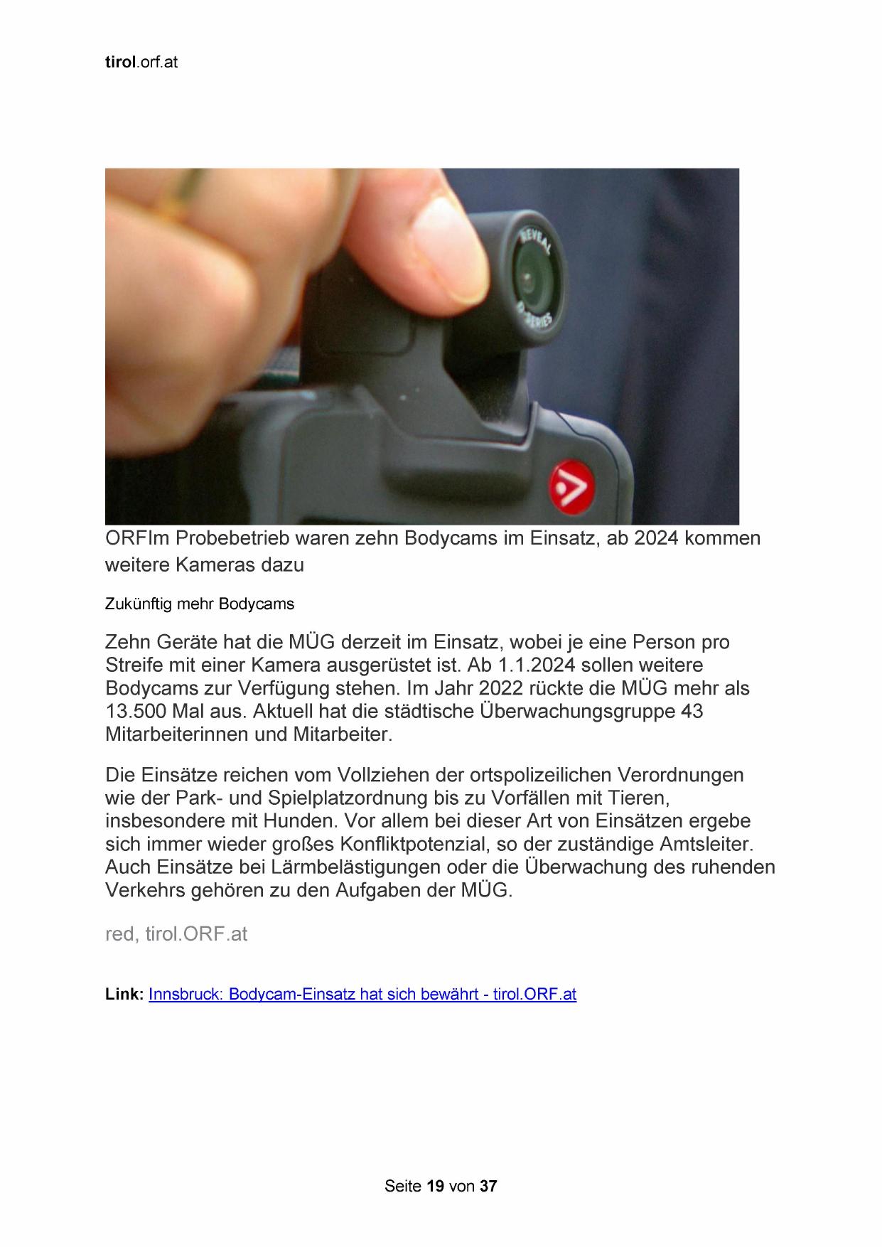 Link: Innsbruck: Bodycam-Einsatz hat sich bewährt - tirol.ORF.at