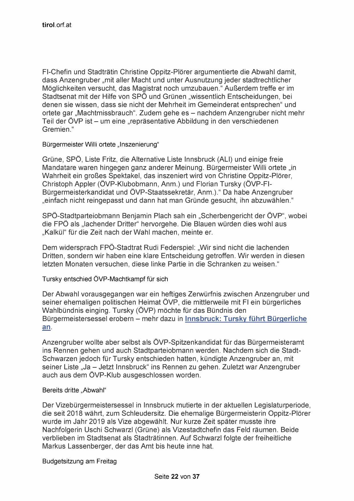 ortete gar „Machtmissbrauch“. Zudem gehe es —- nachdem Anzengruber nicht mehr