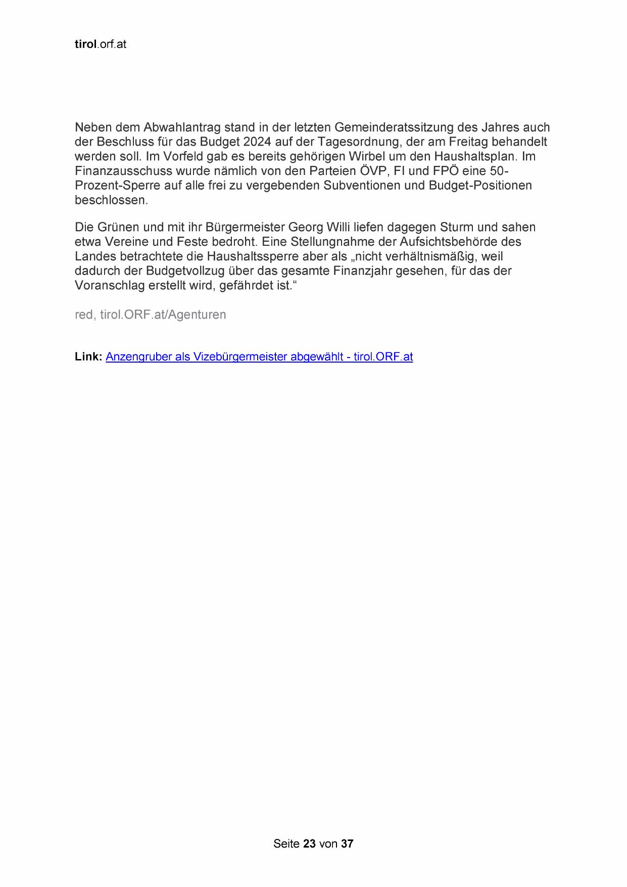 Link: Anzengruber als Vizebürgermeister abgewählt - tirol.ORF.at