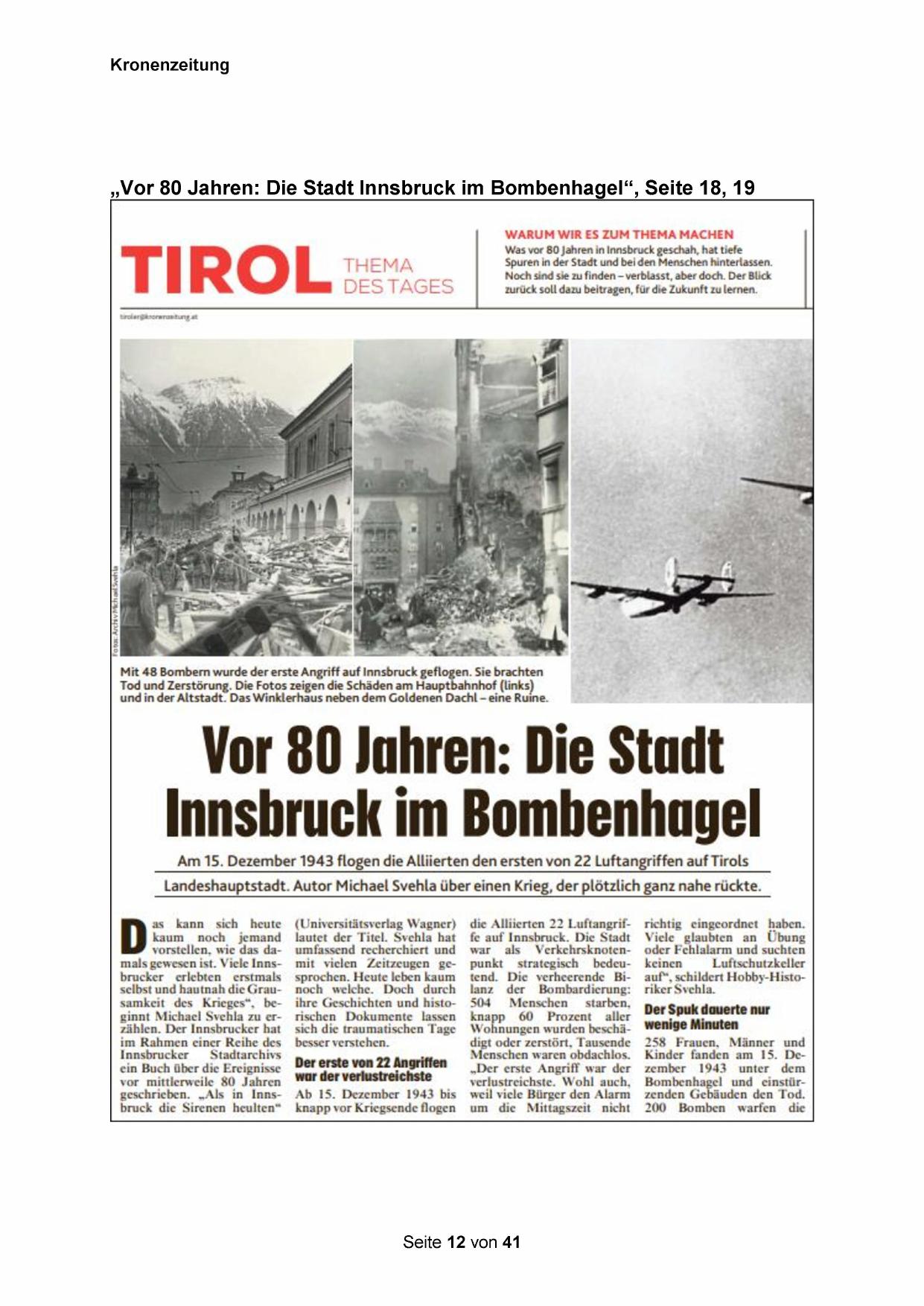 „Vor 80 Jahren: Die Stadt Innsbruck im Bombenhagel“, Seite 18, 19