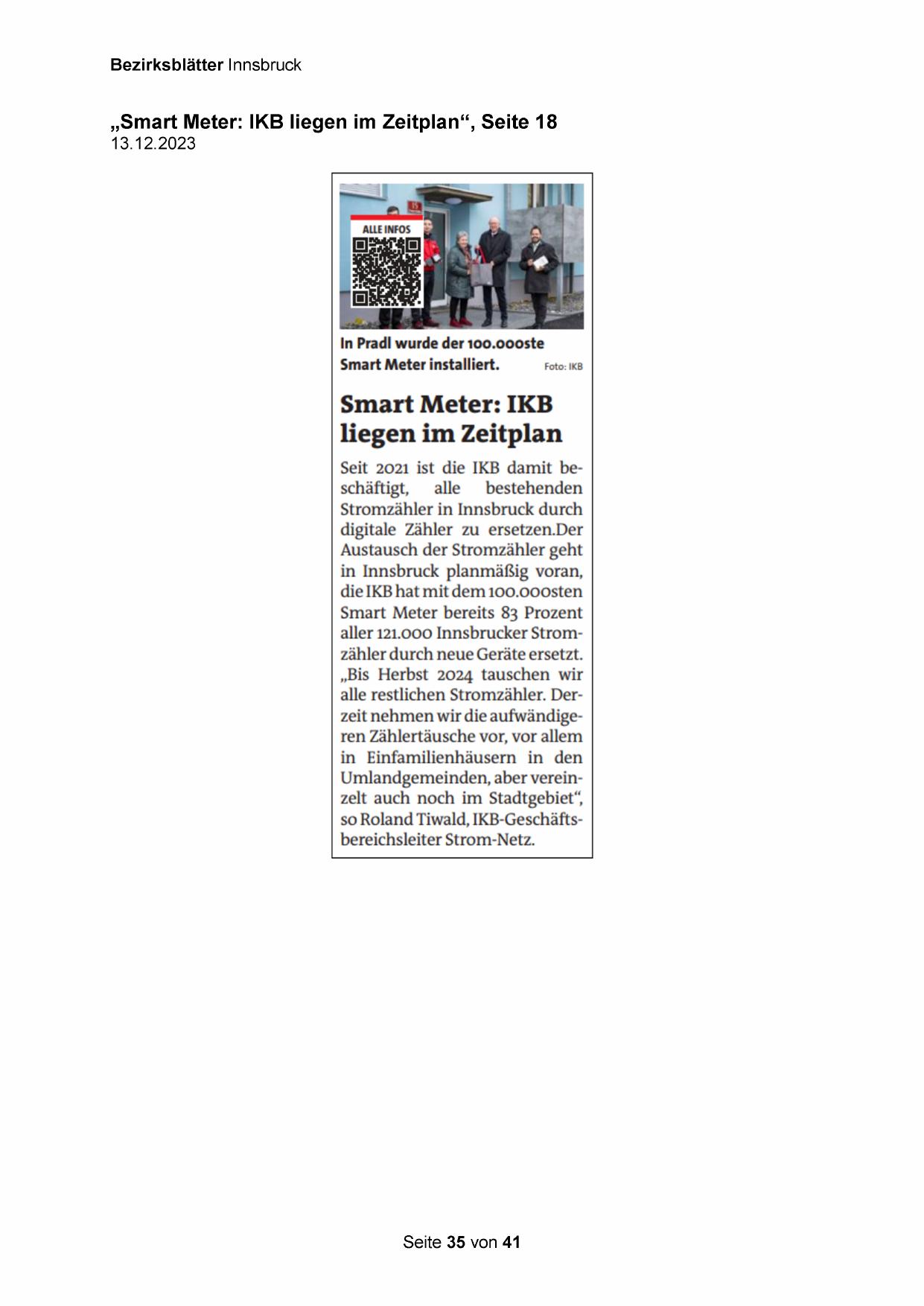 aller 121.000 Innsbrucker Stromzähler durch neue Geräte ersetzt.