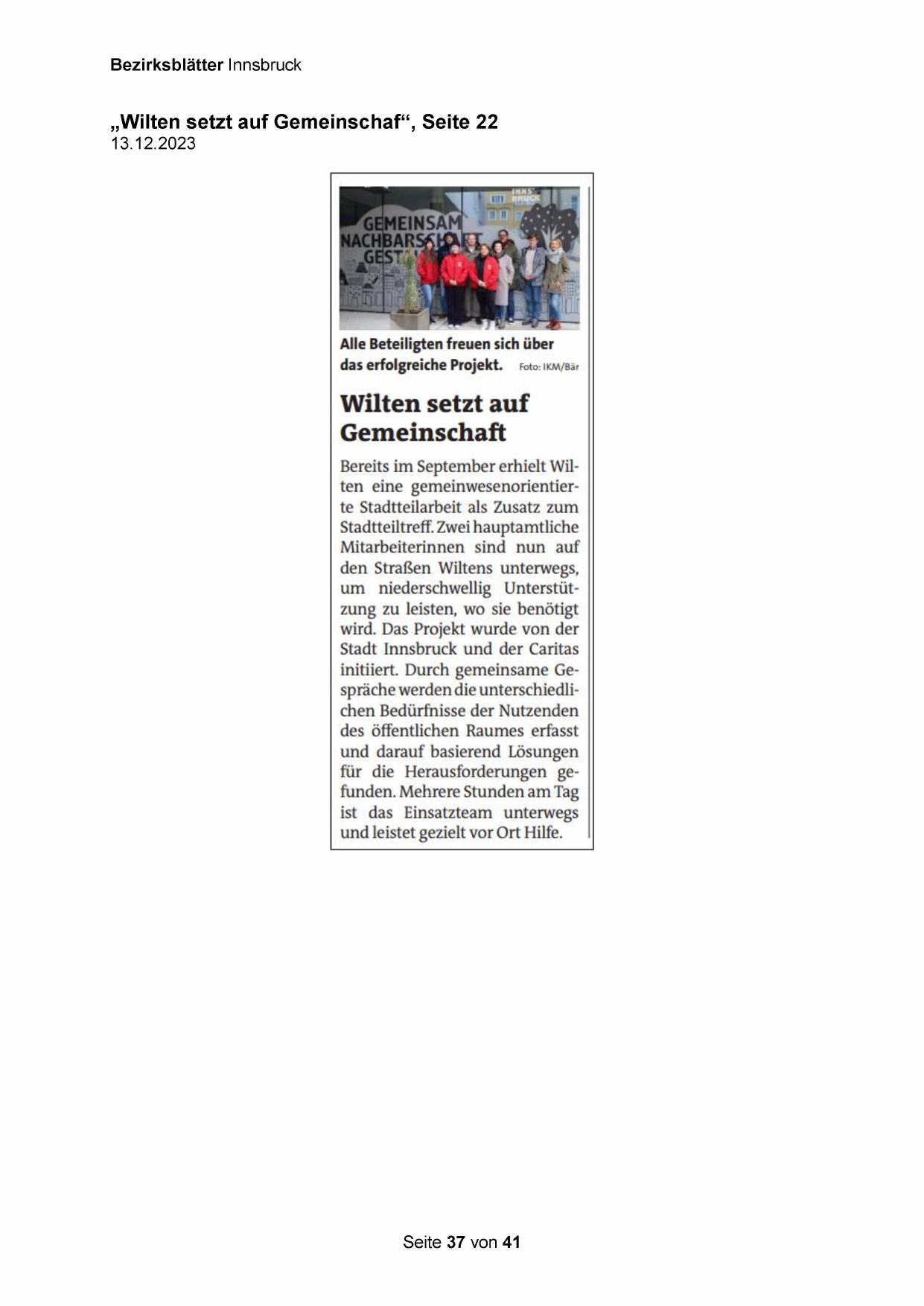 „Wilten setzt auf Gemeinschaf“, Seite 22