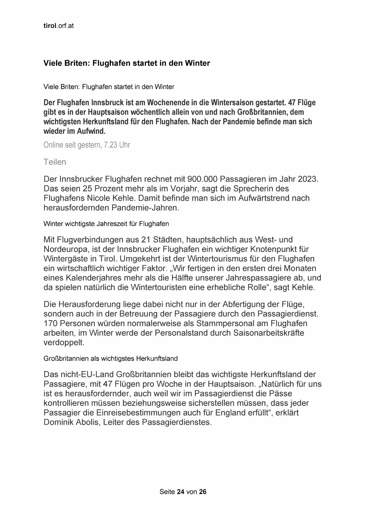 Der Innsbrucker Flughafen rechnet mit 900.000 Passagieren im Jahr 2023.