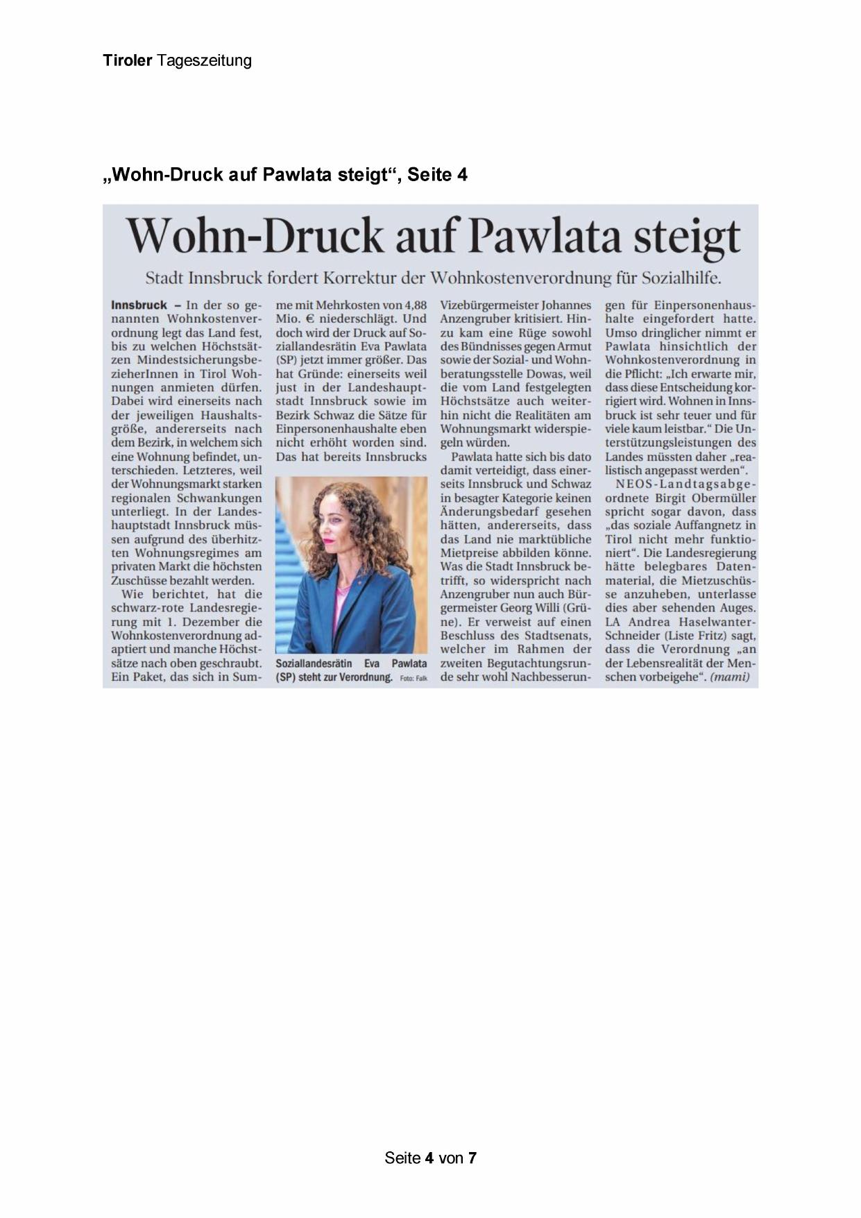„Wohn-Druck auf Pawlata steigt“, Seite 4