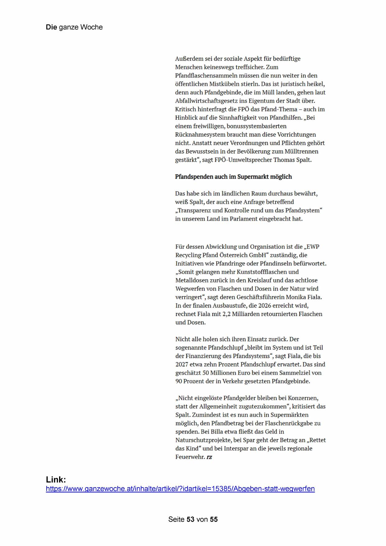 Kritisch hinterfragt die FPÖ das Pfand-Thema —- auch im