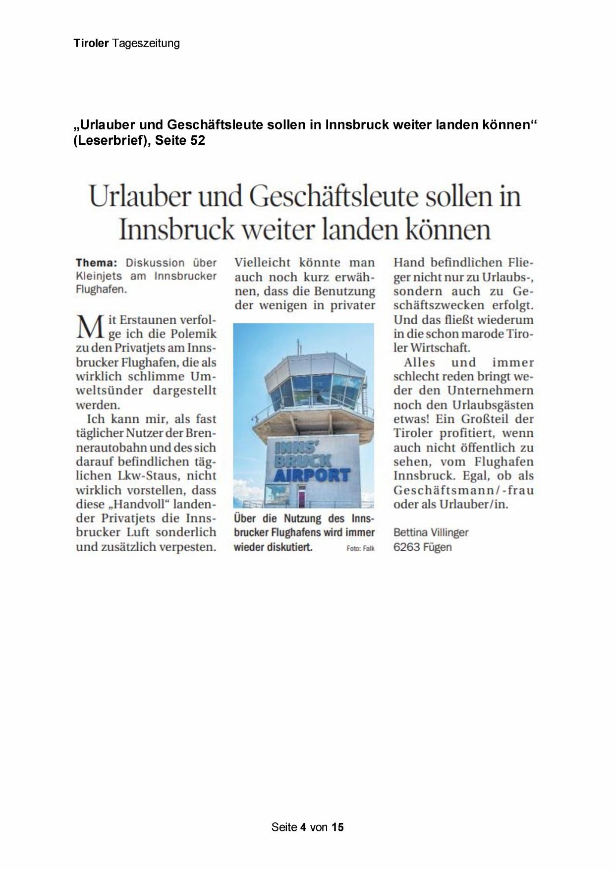 diese „Handvoll“ landender Privatjets die Innsbrucker Luft sonderlich