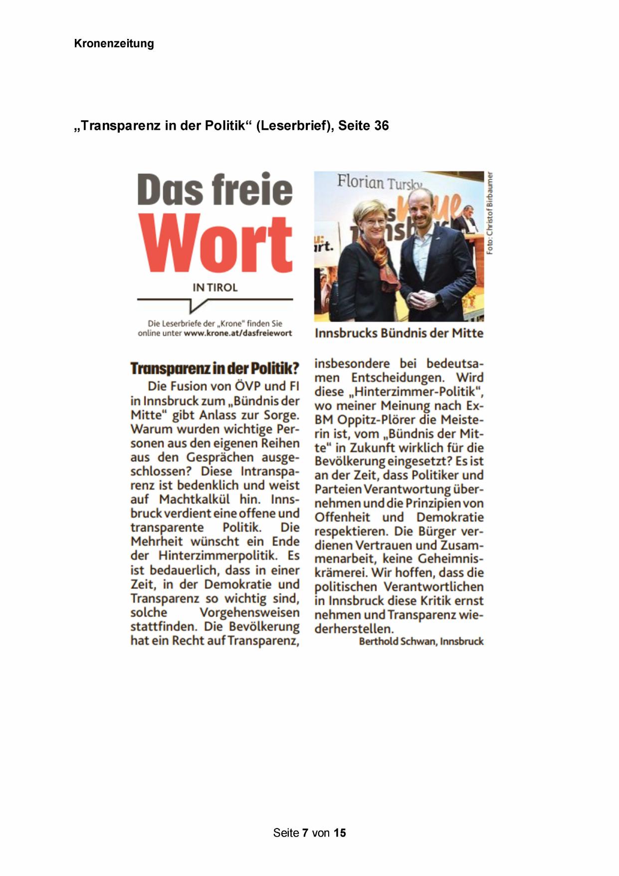 „Transparenz in der Politik‘“ (Leserbrief), Seite 36