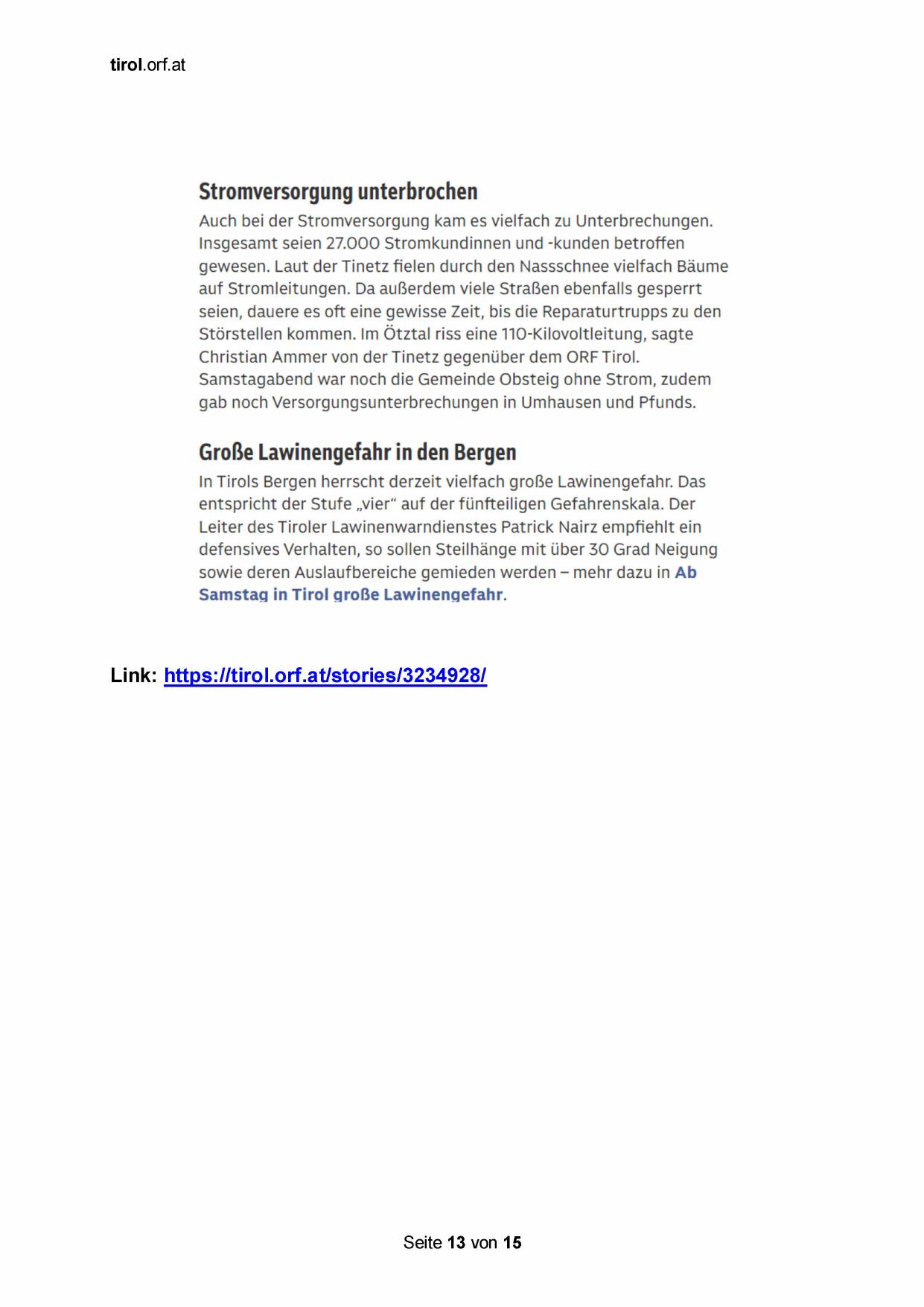 gewesen. Laut der Tinetz fielen durch den Nassschnee vielfach Bäume
