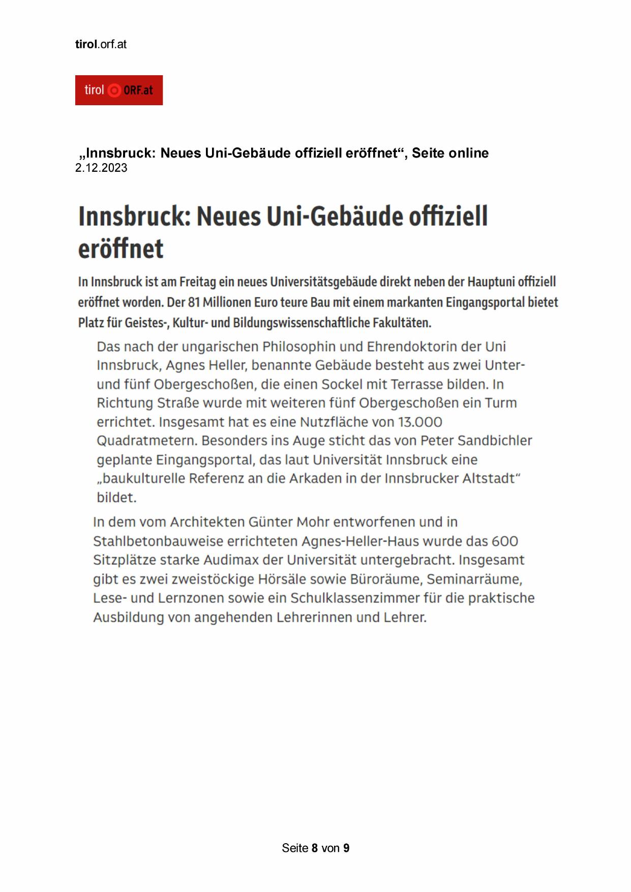 „Innsbruck: Neues Uni-Gebäude offiziell eröffnet‘, Seite online