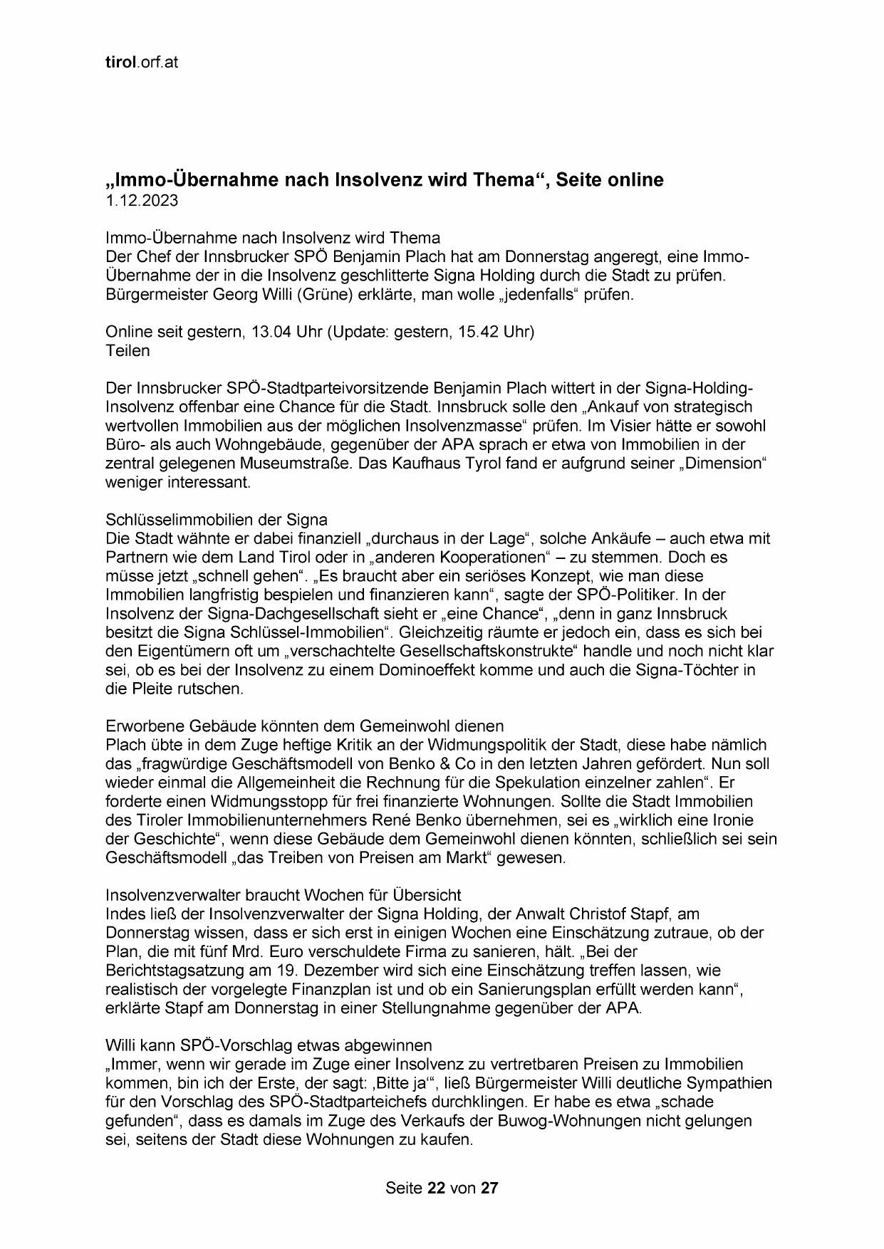 „Immo-Übernahme nach Insolvenz wird Thema“, Seite online