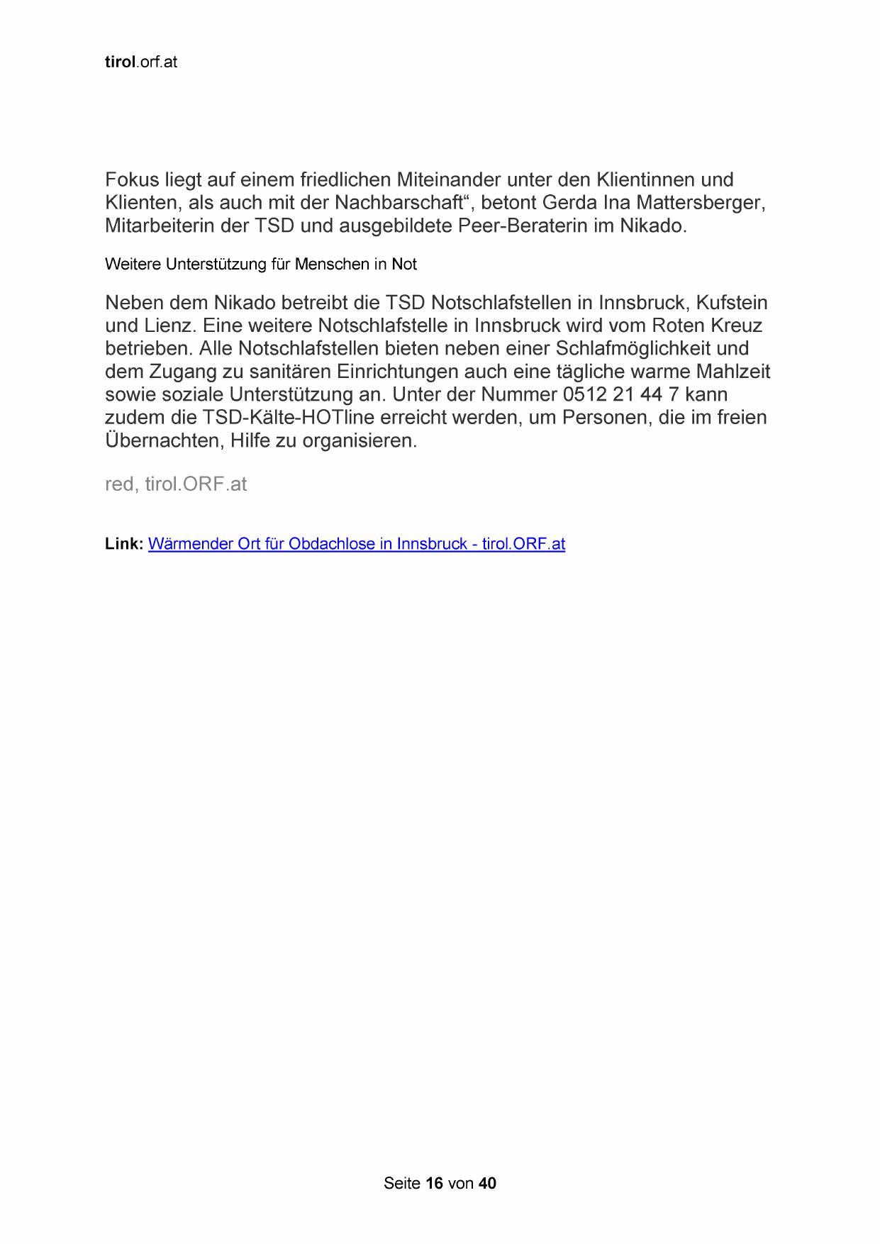 Link: Wärmender Ort für Obdachlose in Innsbruck - tirol.ORF.at