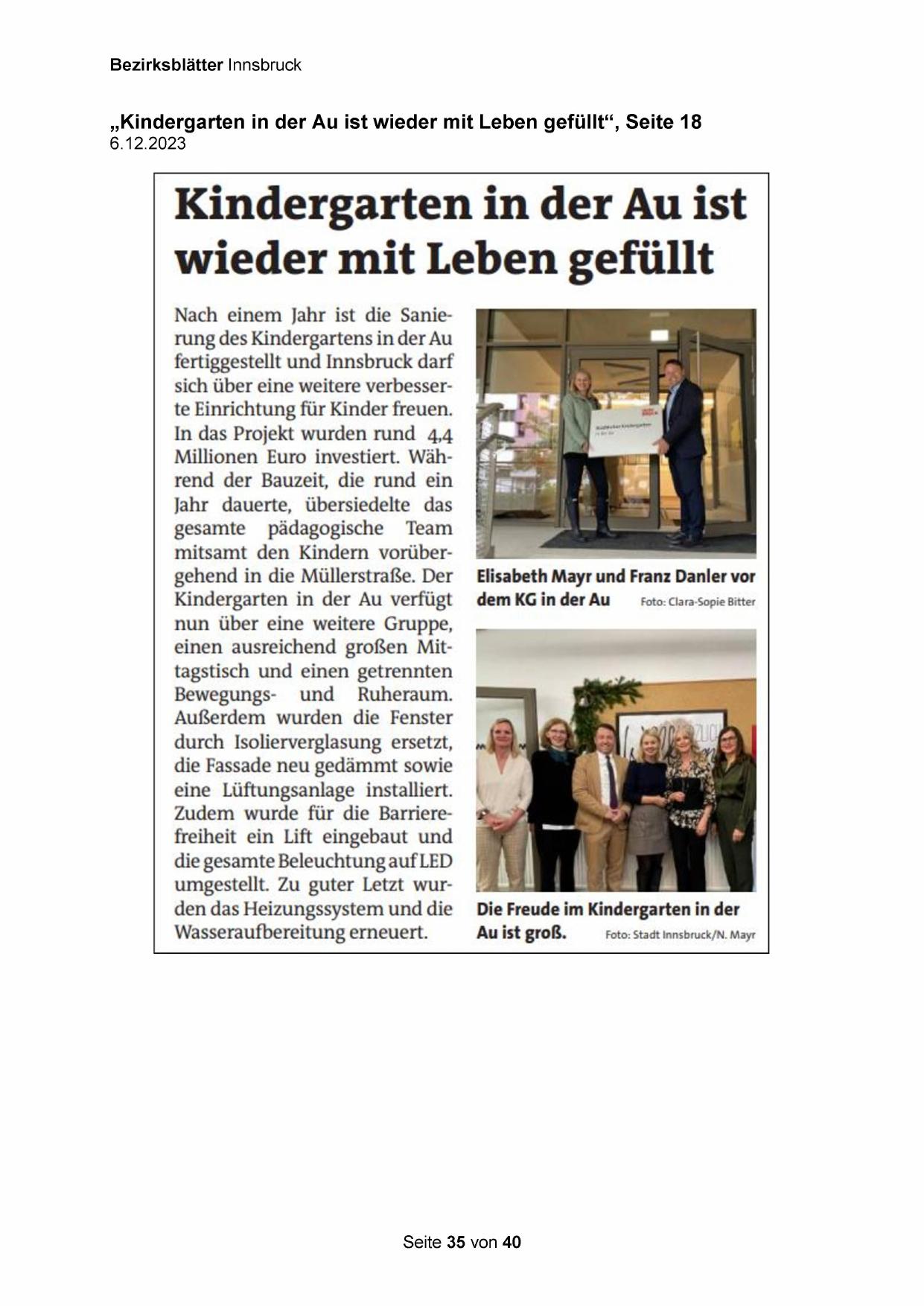 „Kindergarten in der Au ist wieder mit Leben gefüllt‘“, Seite 18