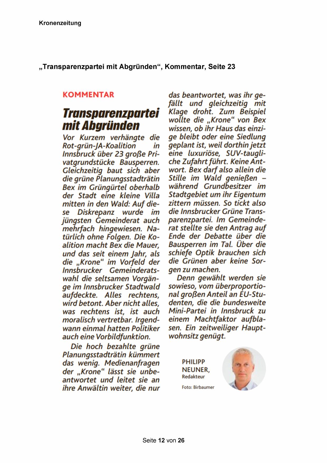 „Transparenzpartei mit Abgründen“, Kommentar, Seite 23