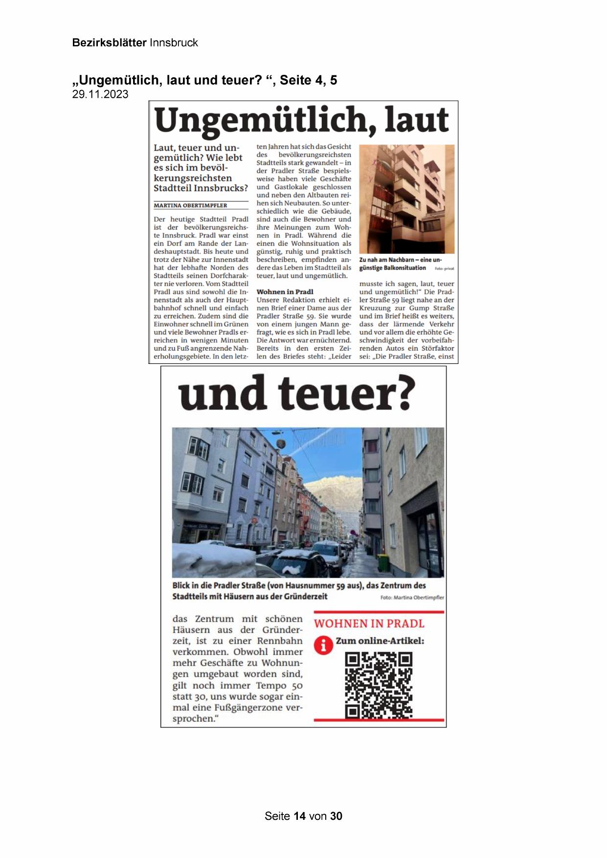 ihre Meinungen zum Wohnen in Pradl. Während die