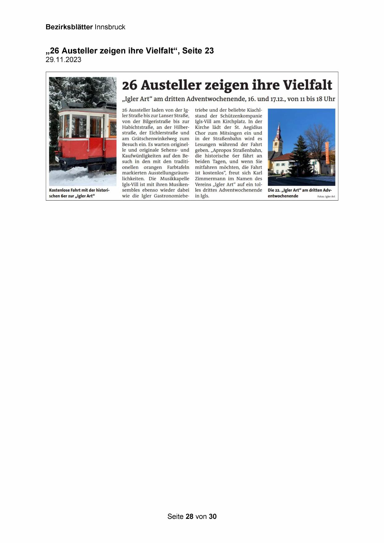 Die 22. „Igler Art“ am dritten Adventwochenende