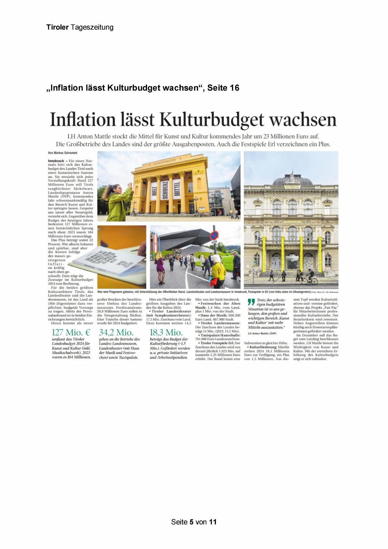 „Inflation lässt Kulturbudget wachsen“, Seite 16