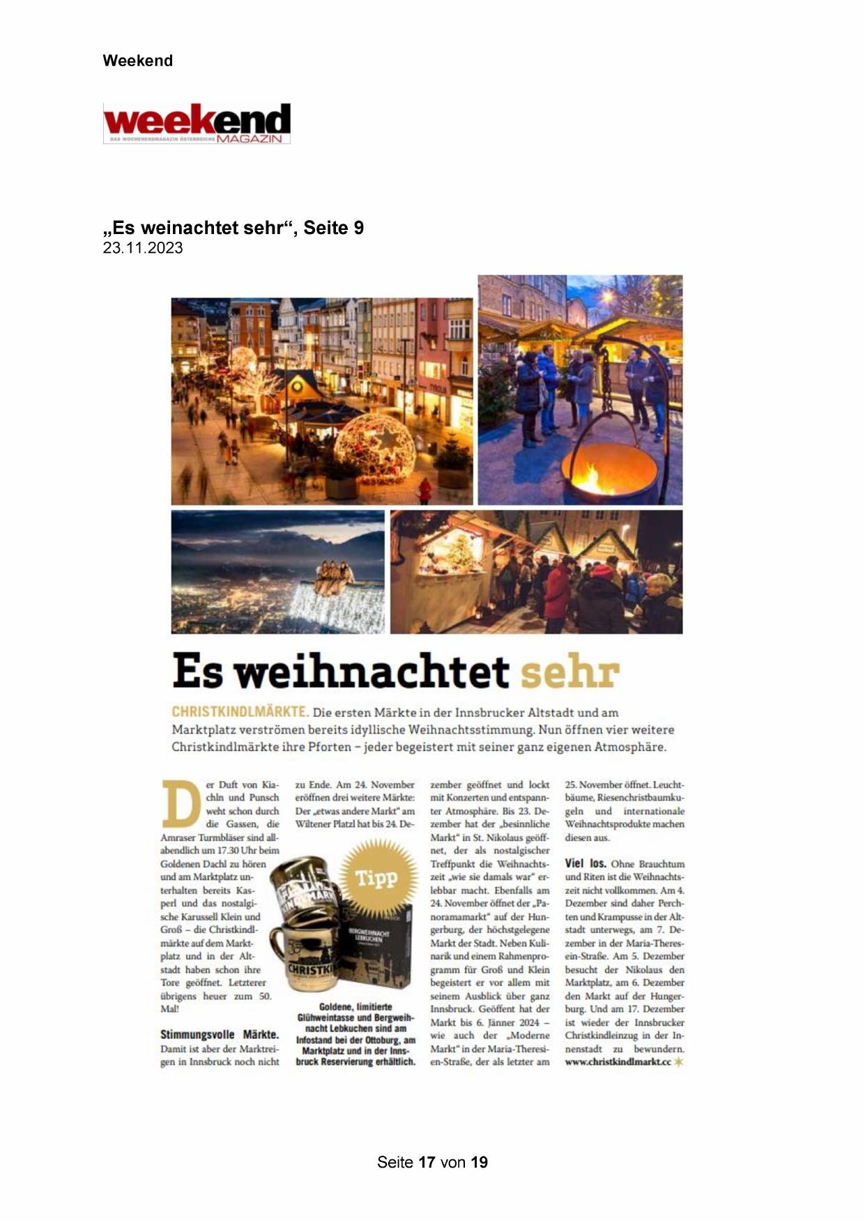 den Markt auf der Hungerburg. Und am 17. Dezember