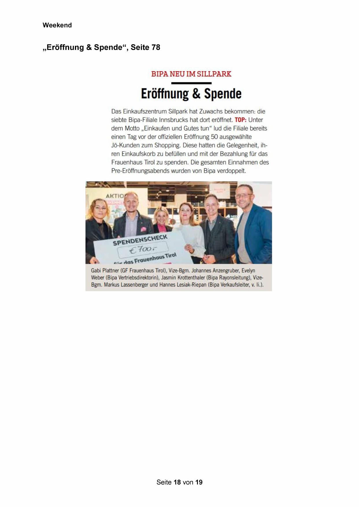 Frauenhaus Tirol zu spenden. Die gesamten Einnahmen des