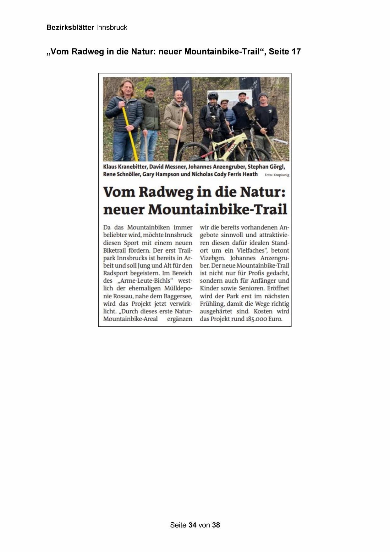 Biketrail fördern. Der erst Trailpark Innsbrucks ist bereits in Arbeit und soll Jung und Alt für den