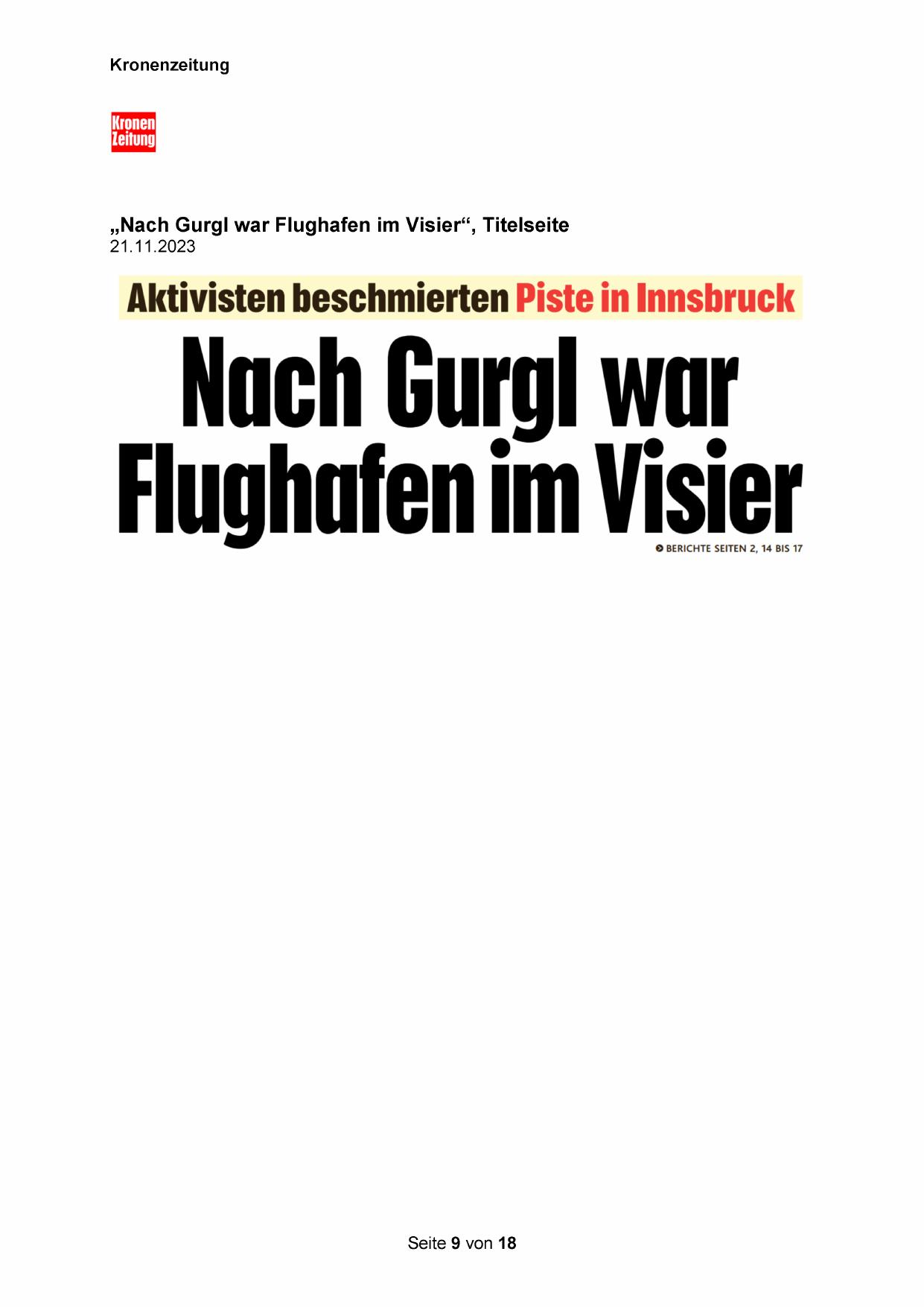 „Nach Gurgl war Flughafen im Visier“, Titelseite